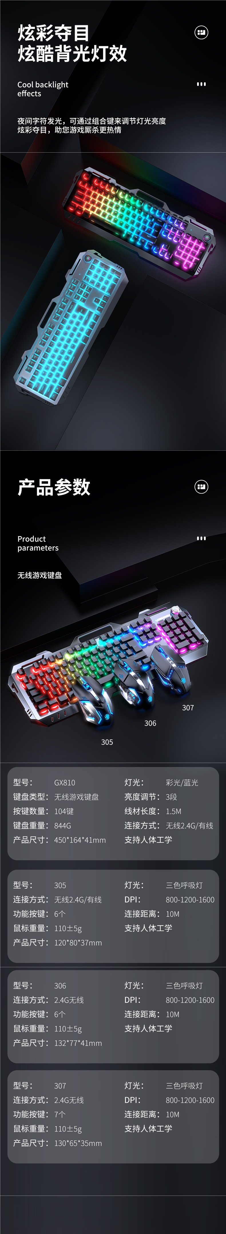 Forerunner GX810 무선 키보드 및 마우스 세트 기계적 느낌 게임 e-스포츠 사무실 컴퓨터 주변기기 도매
