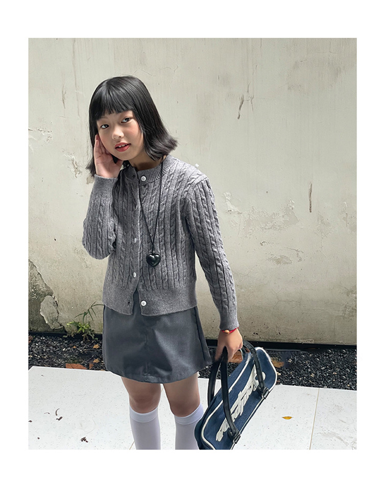 아동용 부드럽고 밀랍 같은 스웨터 카디건 슬림 니트 트위스트 재킷 대학 스타일 가을 새로운 짧은 스타일 단순 기질 탑스토어 가기