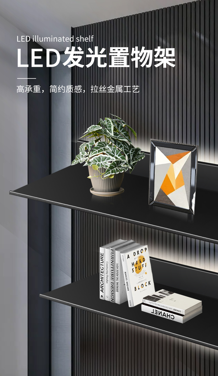 알루미늄 금속 LED 발광 라미네이트 보관 랙 파티션 벽 벽 충전 보관 디스플레이 책장