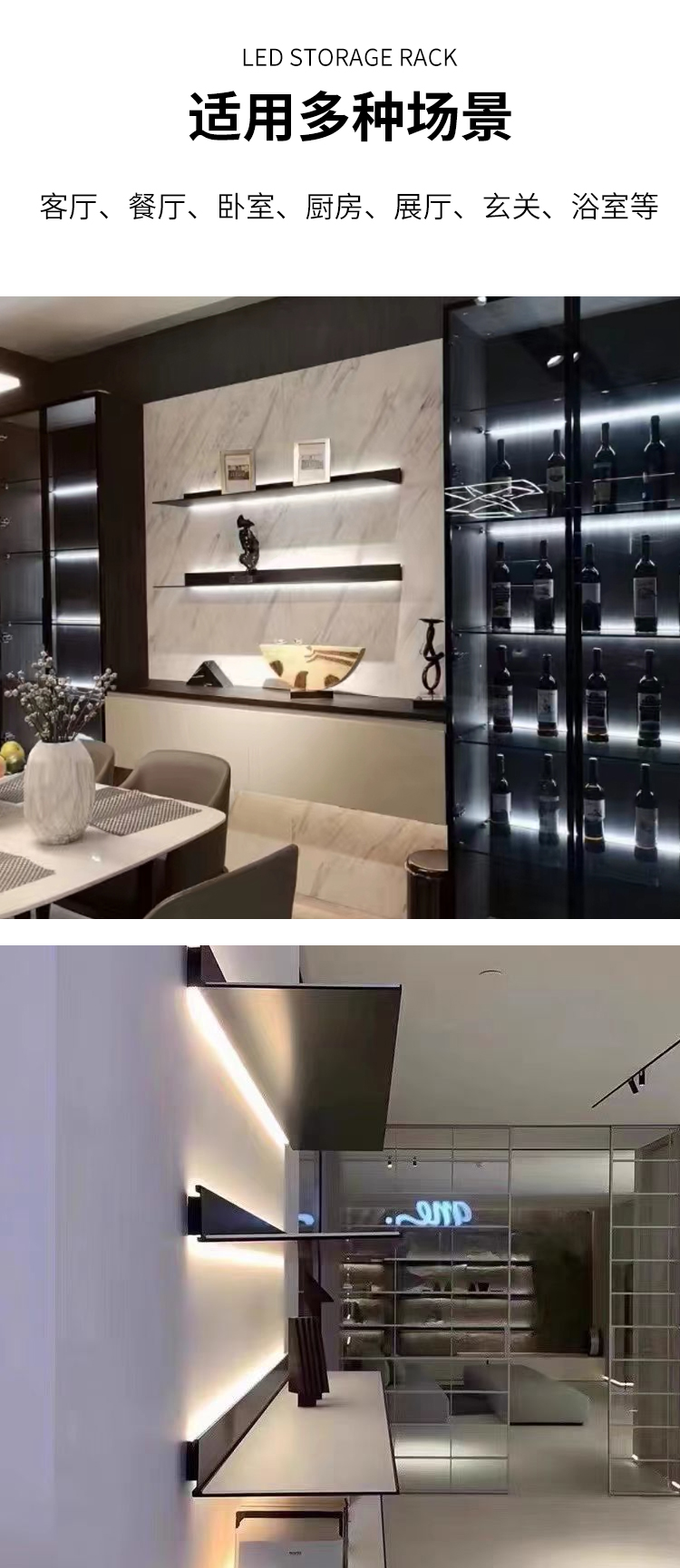 알루미늄 금속 LED 발광 라미네이트 보관 랙 파티션 벽 벽 충전 보관 디스플레이 책장스토어 가기