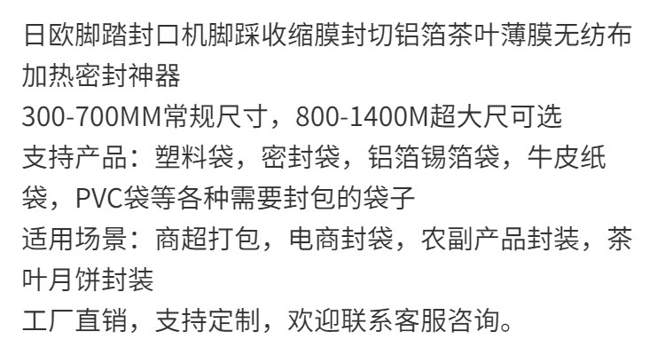 일본 및 유럽 풋 페달 실링 기계 맞춤형 풋 페달 수축 필름 실링 및 절단 비닐 봉투 비닐 봉투 가열 실링 유물 상업용스토어 가기