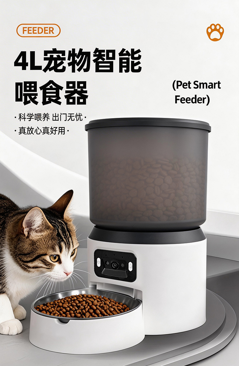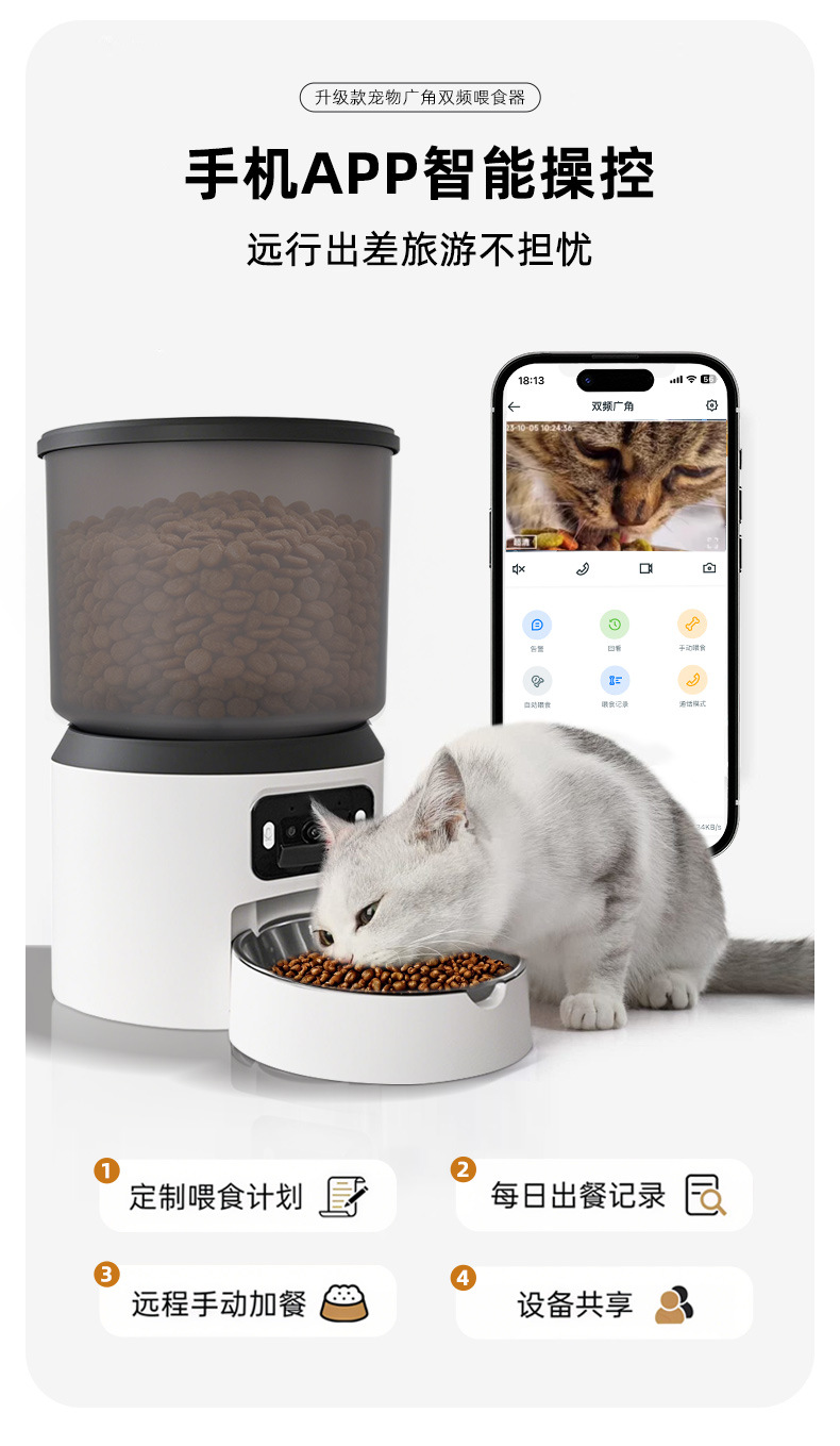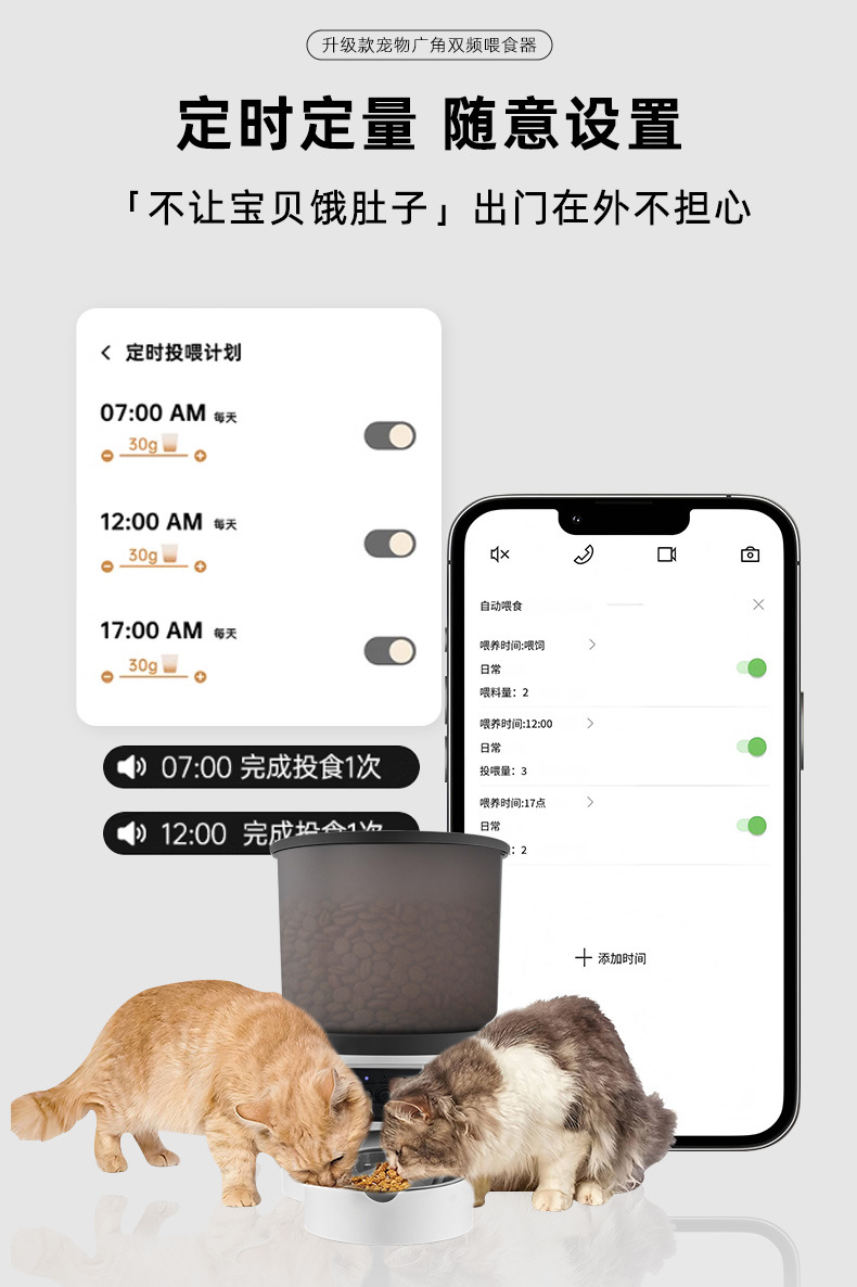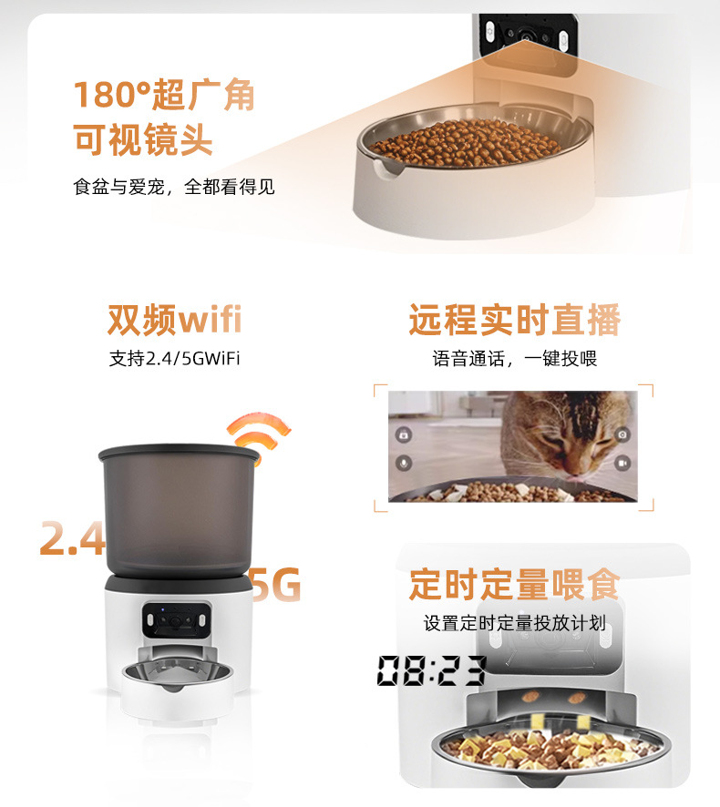 애완 동물 자동 고양이 먹이 공급기 4L 대용량 끈적임 방지 이중 주파수 고양이 먹이 공급기 WIFI 원격 지능형 먹이 공급