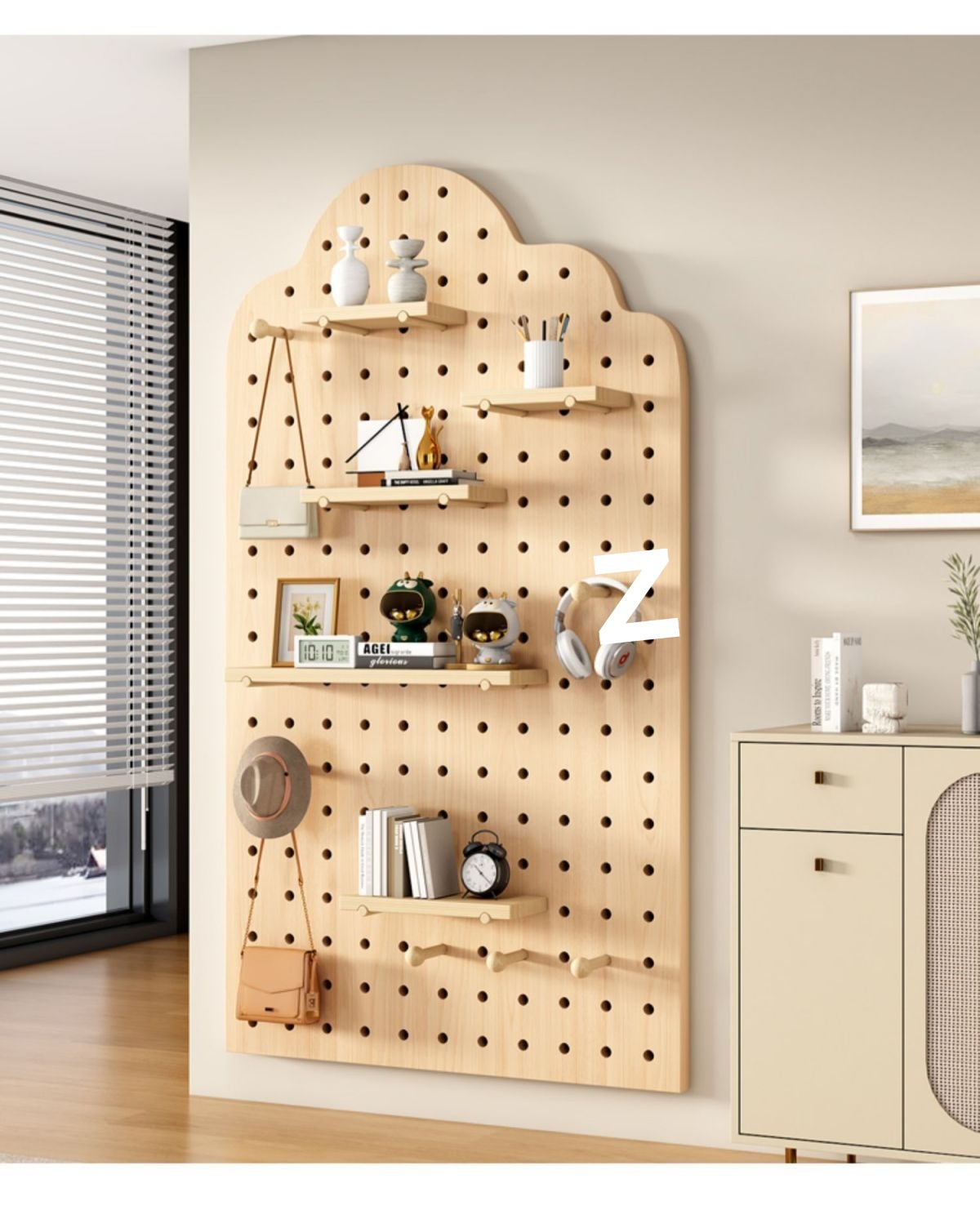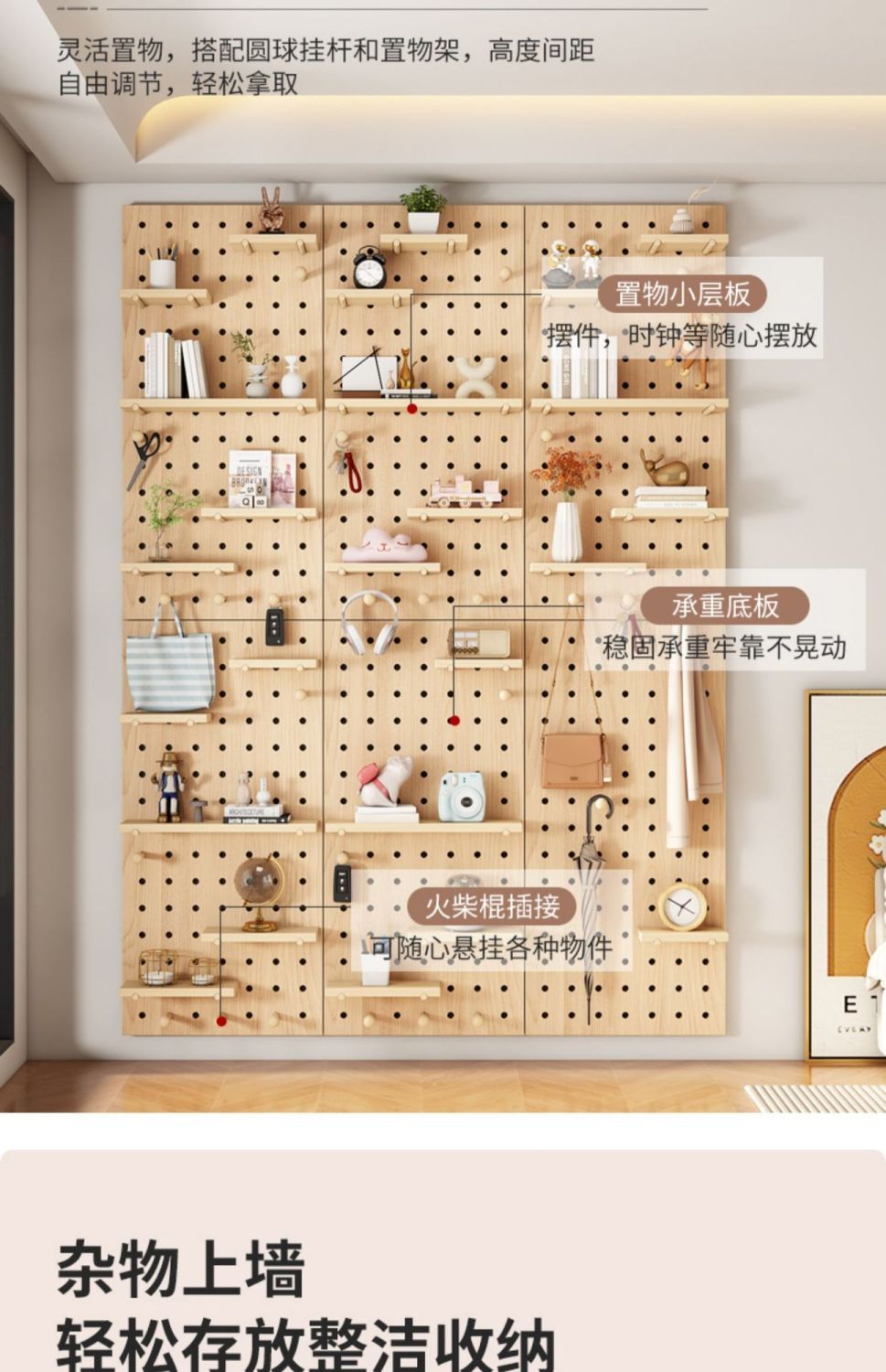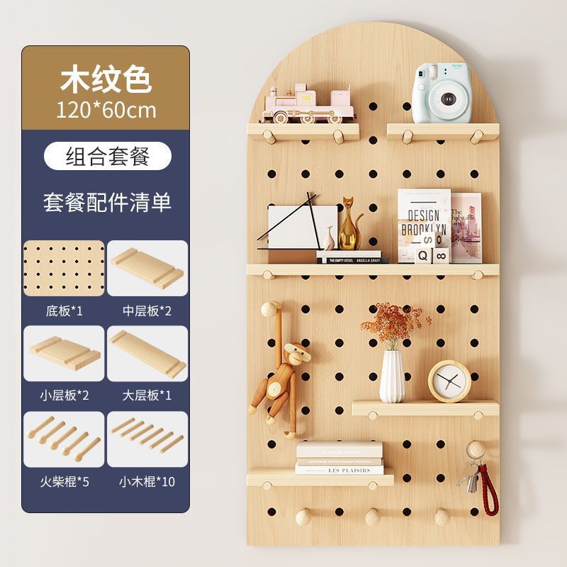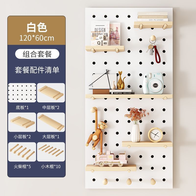 단단한 나무 구멍 보드 벽 선반 거실 벽걸이 형 파티션 스토리지 랙 배경 벽 간단한 나무 책장스토어 가기