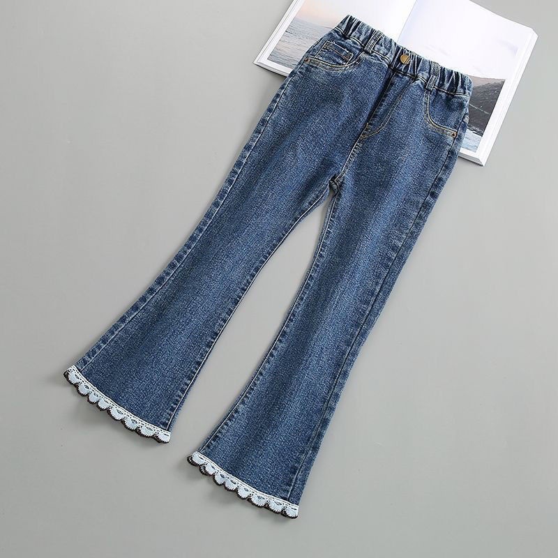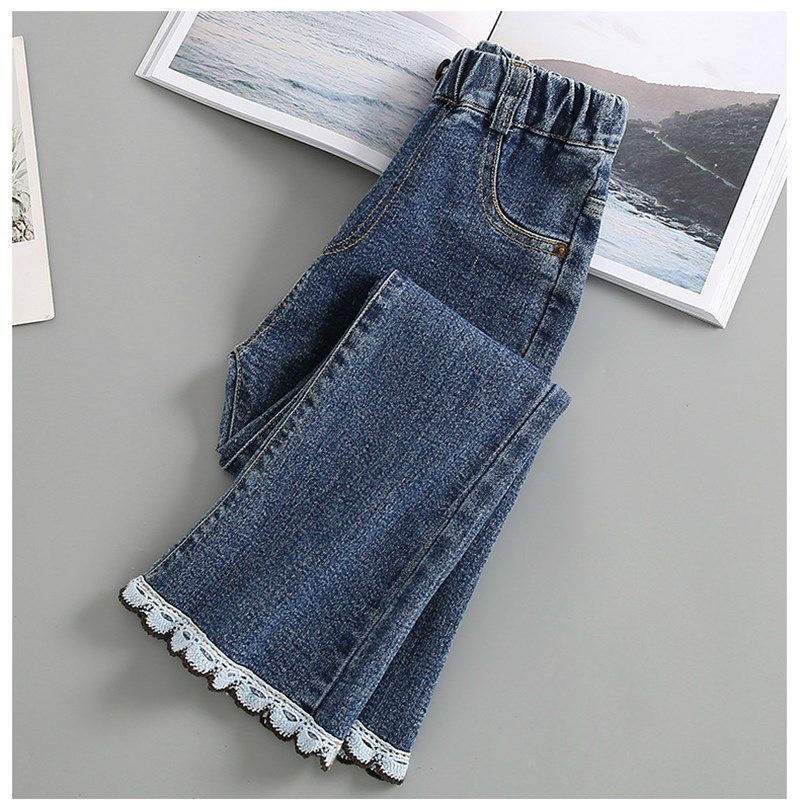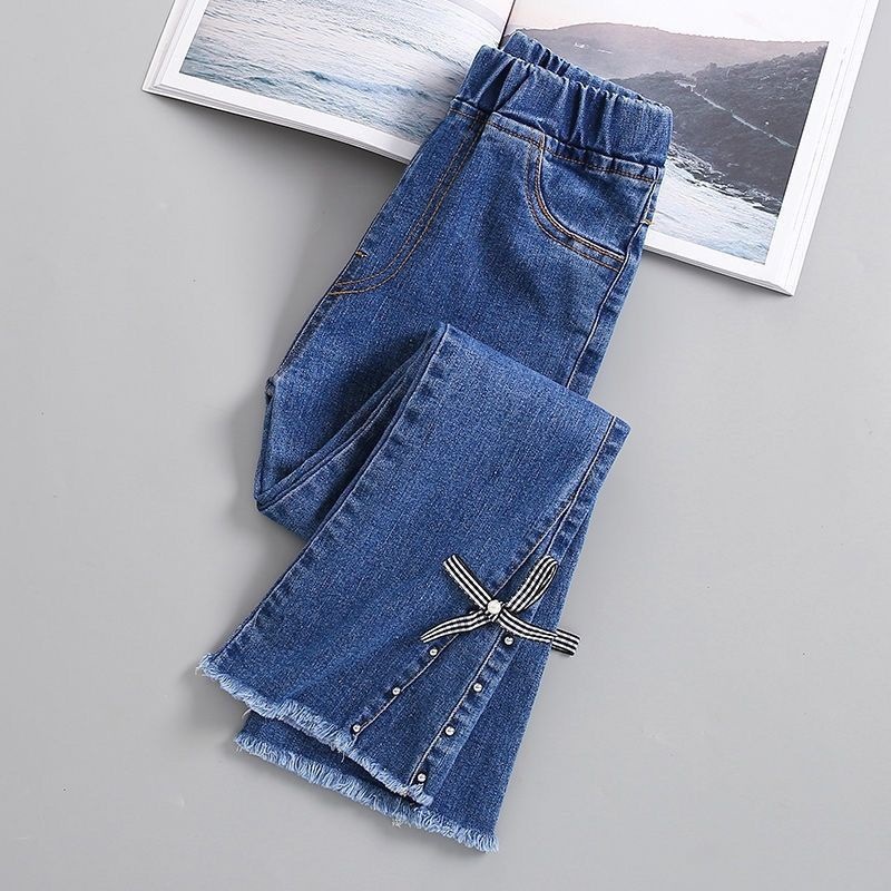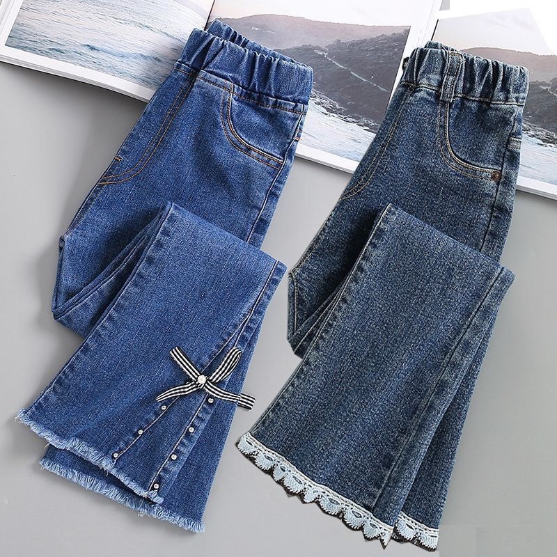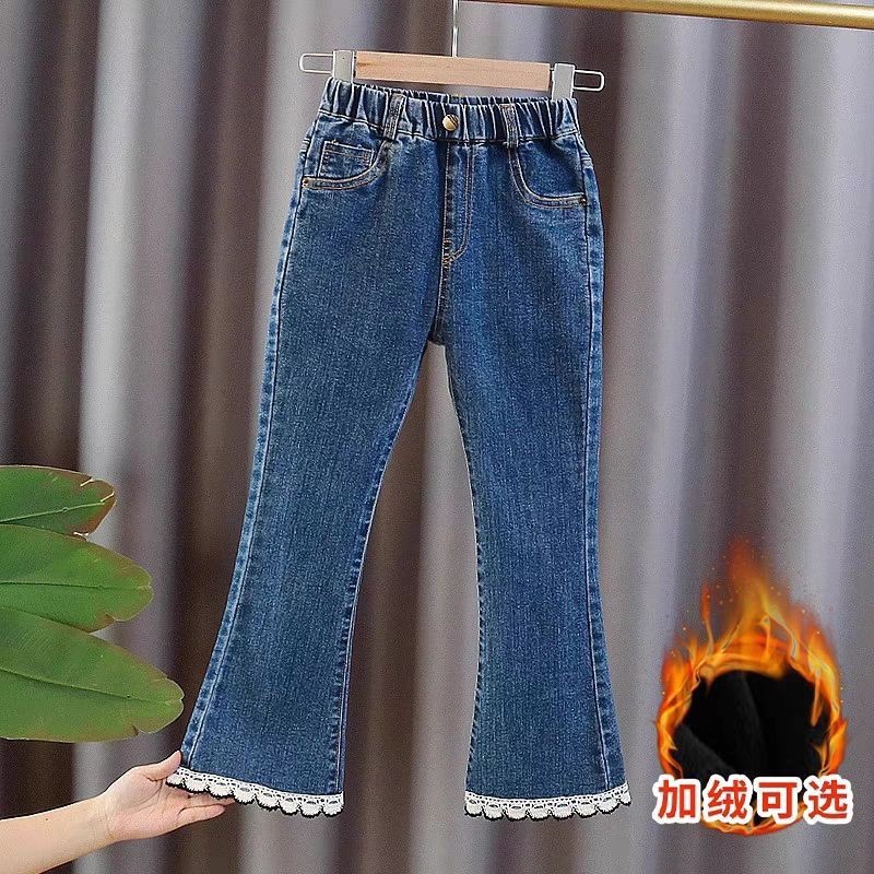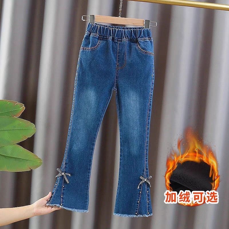 여아 바지, 봄 가을 청바지, 신상 아동용 신축성 있는 나팔바지, 가을 겨울 여아 아우터 플러스 벨벳 바지스토어 가기