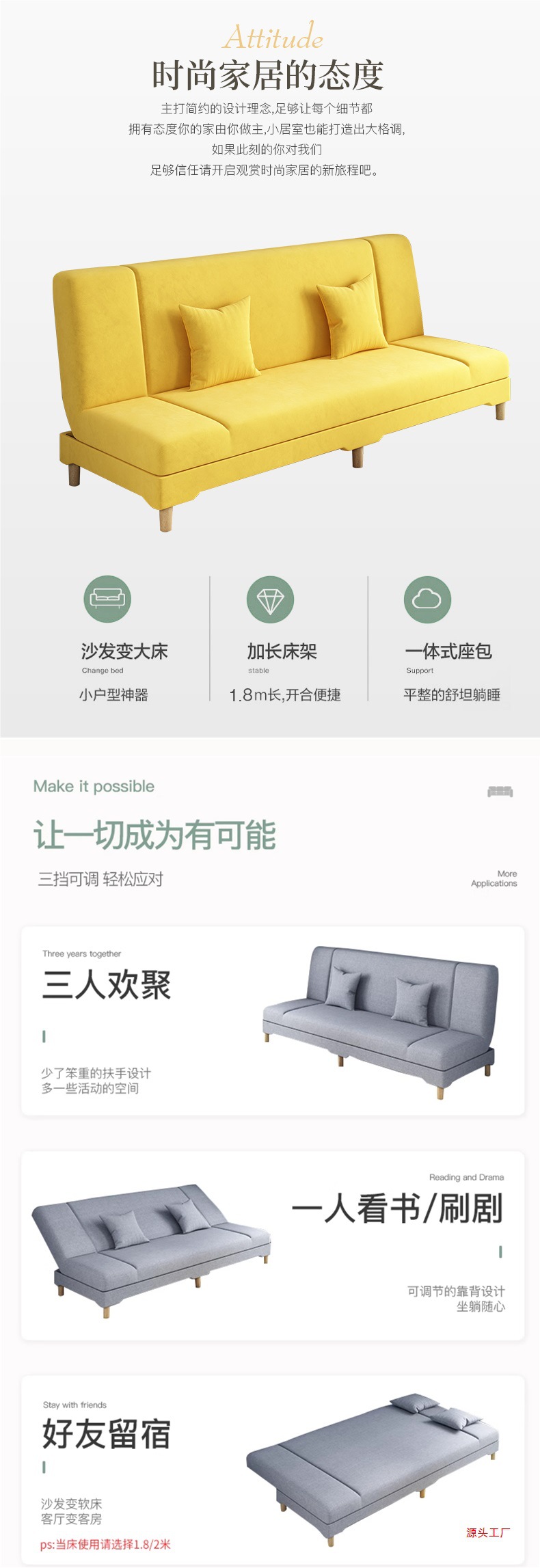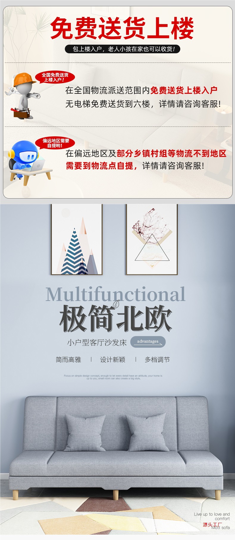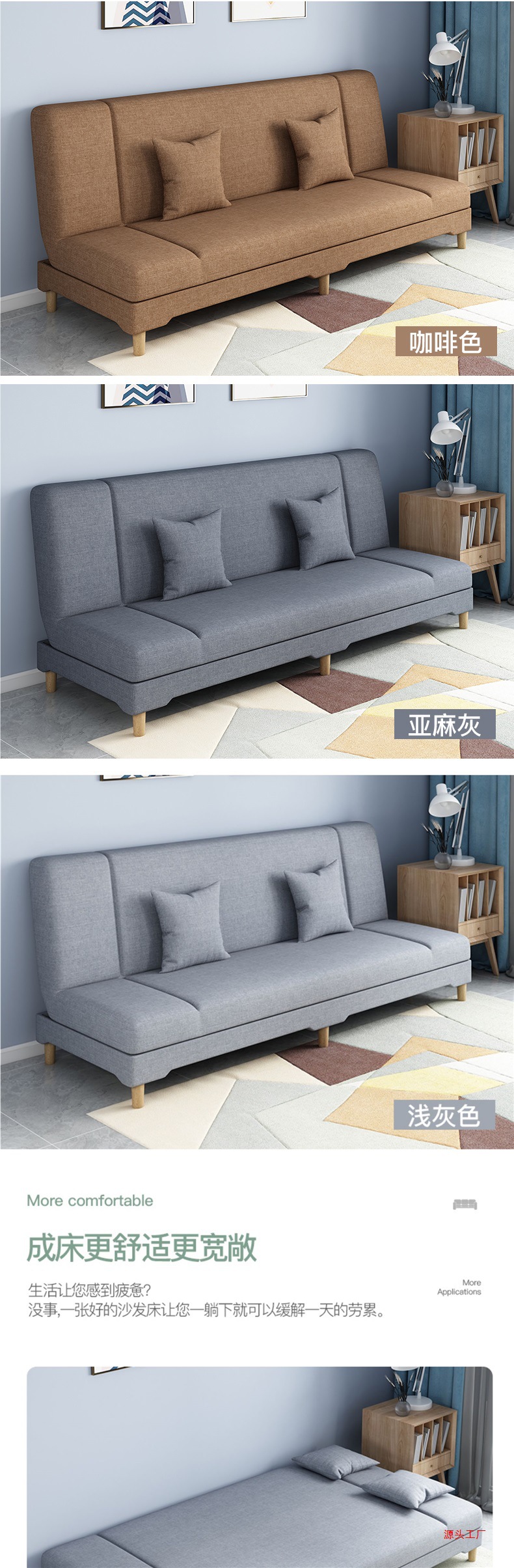 소파 거실 작은 아파트 임대 2025 새로운 간단한 패브릭 게으른 다기능 접이식 소파 침대 이중 용도스토어 가기