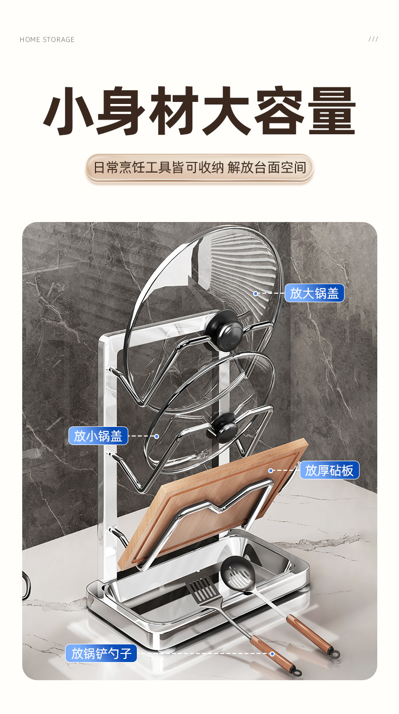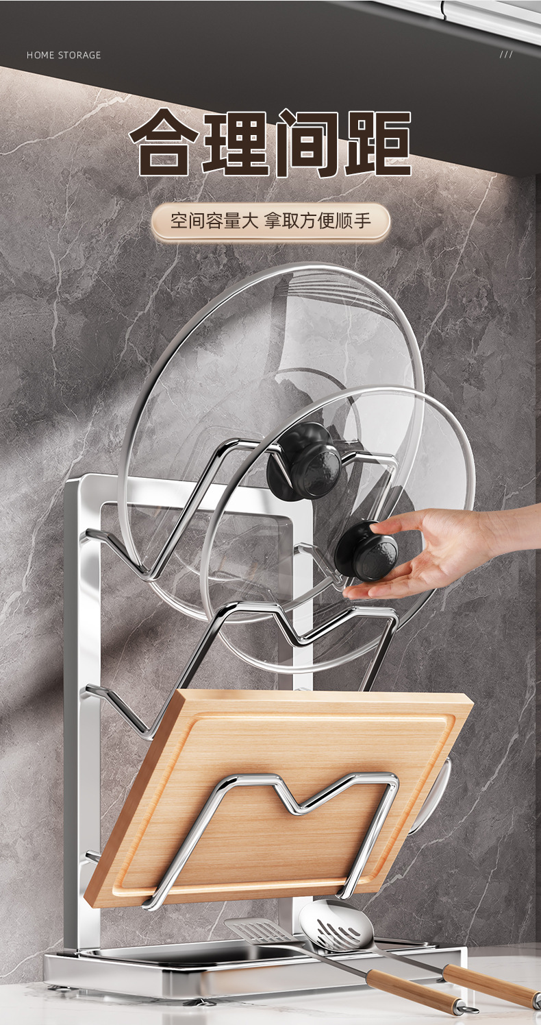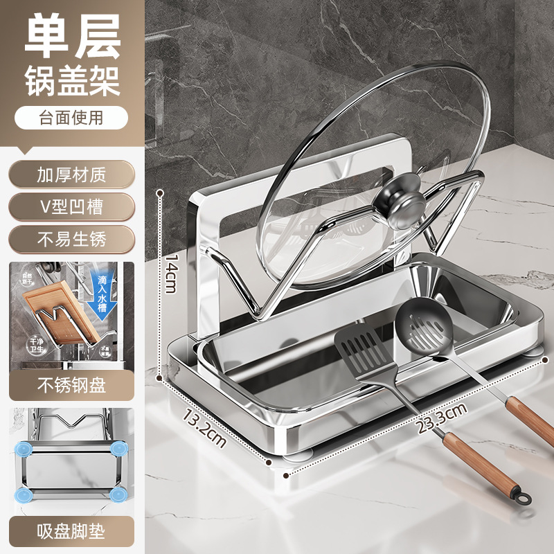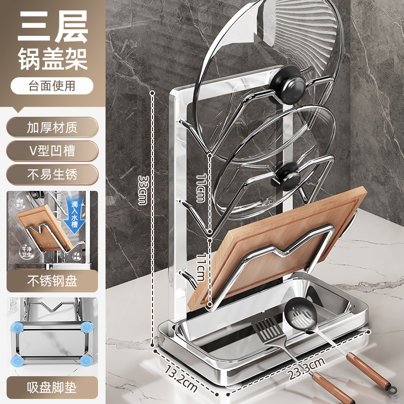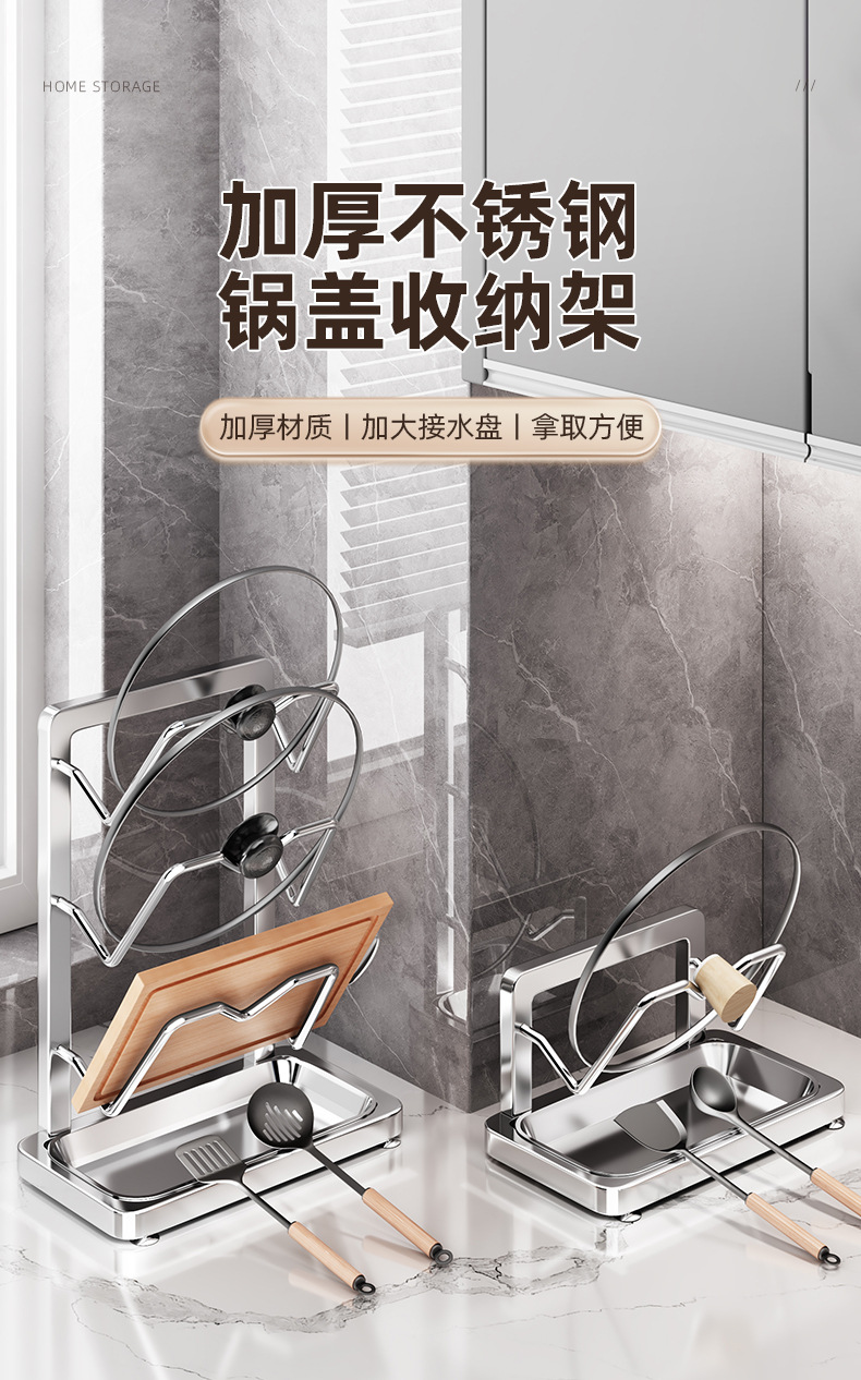 304 스테인레스 스틸 냄비 뚜껑 선반 조리대 주방 보관함 도마 주걱 보관함 2025 새로운 스타일