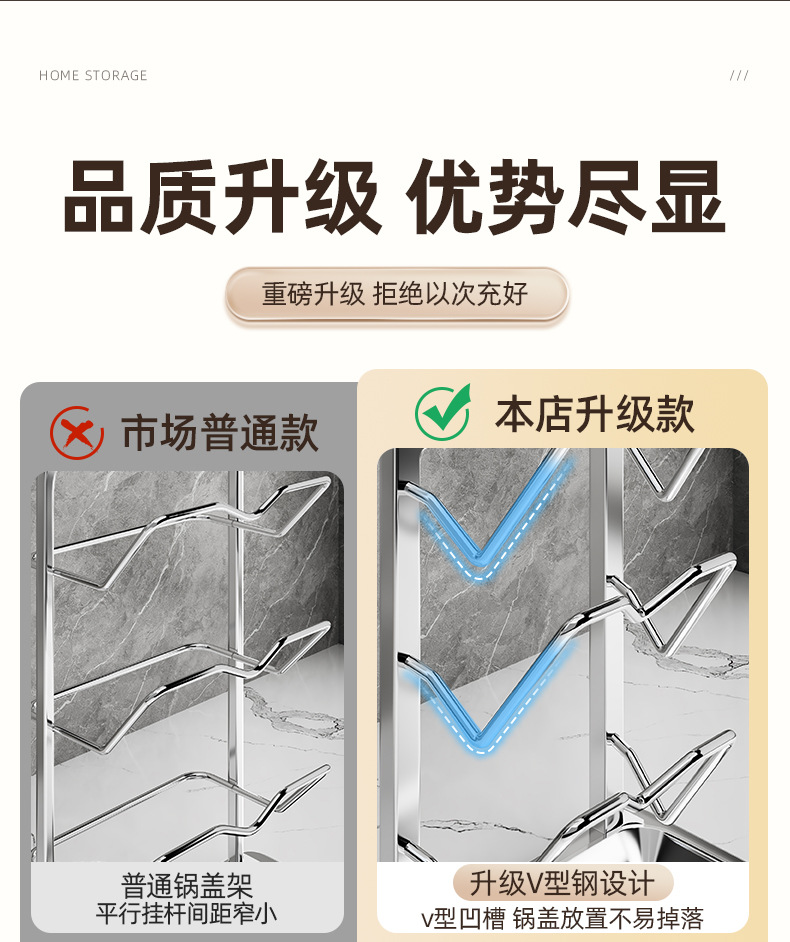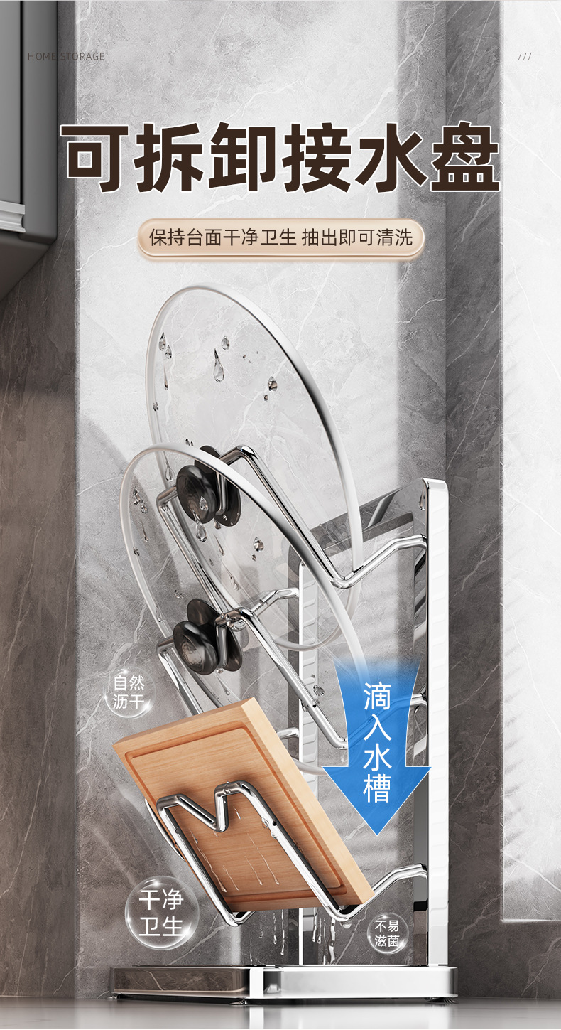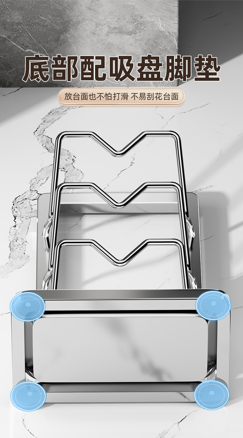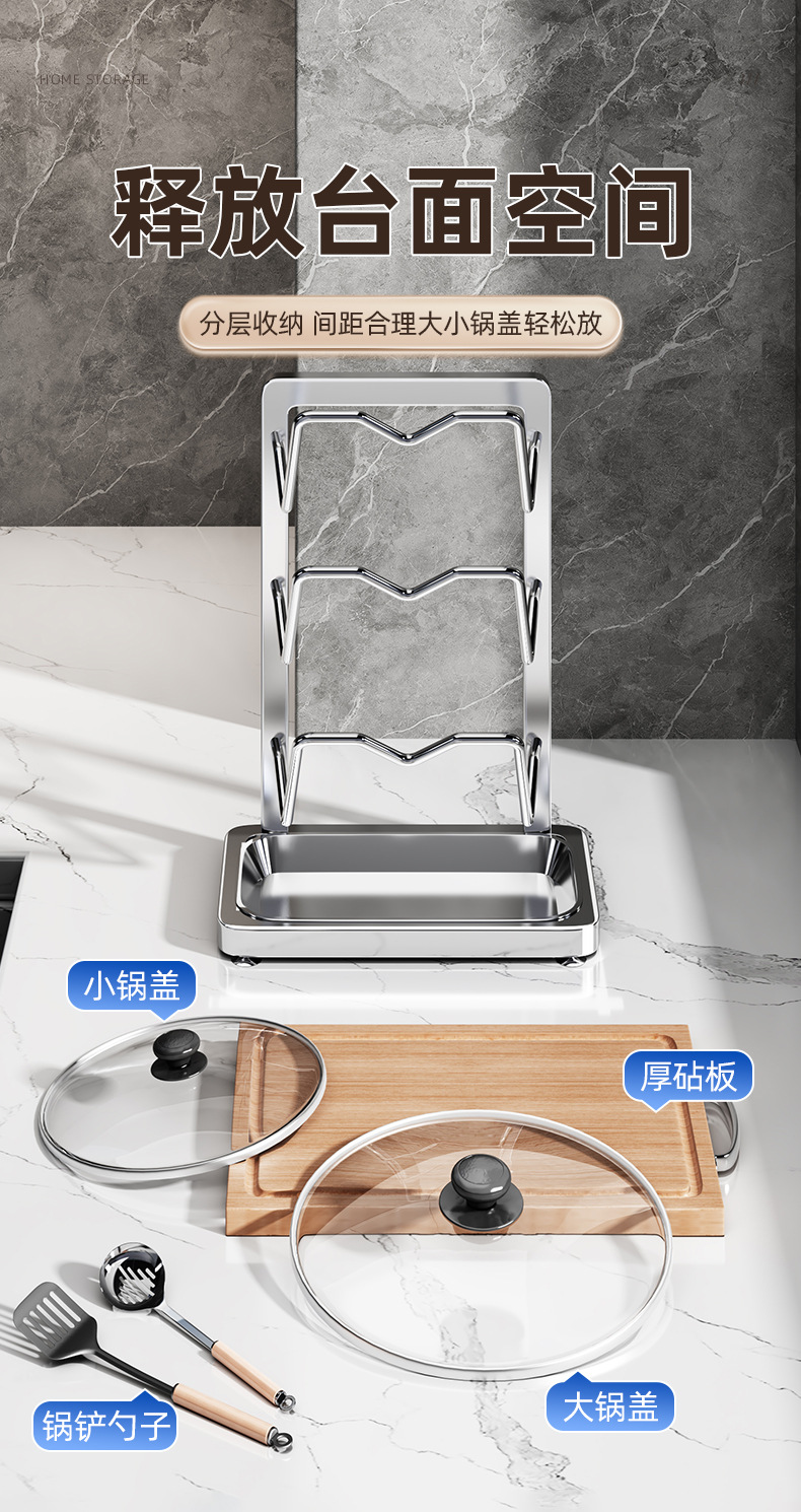 304 스테인레스 스틸 냄비 뚜껑 선반 조리대 주방 보관함 도마 주걱 보관함 2025 새로운 스타일