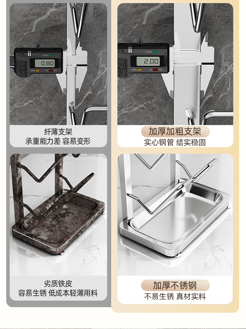 • [두꺼운 304 스테인레스 스틸] 실버 더블 레이어 + 304 물받이 - 흡입 컵 발 지지대