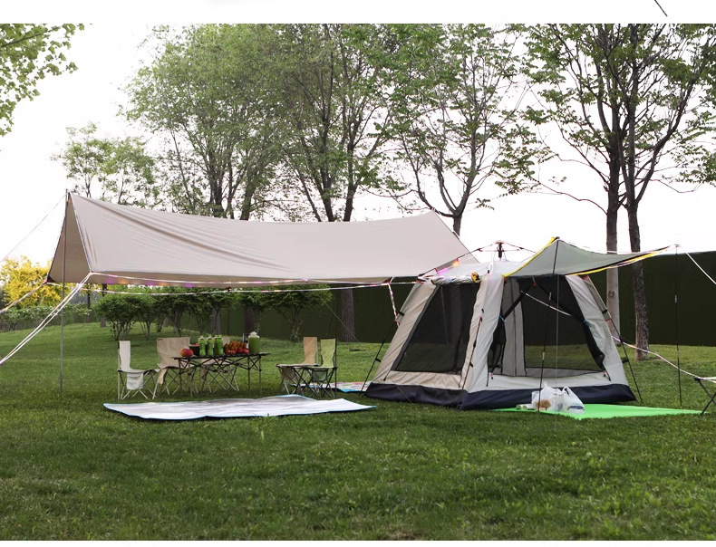 야외 캠핑 여행 피크닉 육각형 캐노피 텐트 두꺼운 태양 보호 및 방수 팔각형 검정색 접착제 실버 코팅 차양스토어 가기