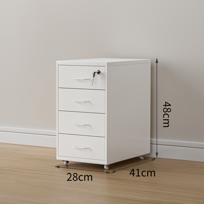 • αβγδεζ【화이트 잠금장치】도파민 책상 밑 철제 수납장 - 4단 서랍 (소형) αβγδεζ☆