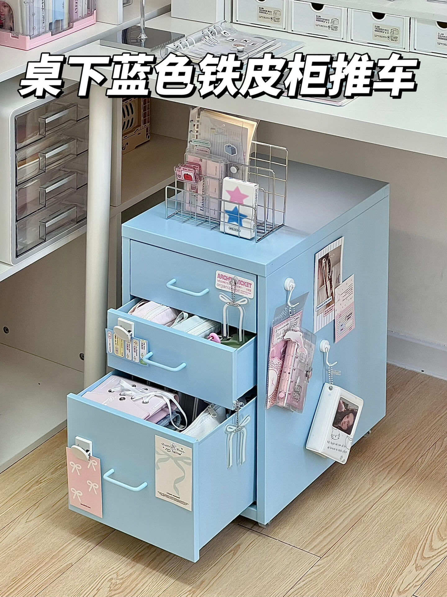 • αβγδεζ【블루】도파민 책상 밑 철제 캐비닛 - 작은 서랍 3개 αβγδεζ☆