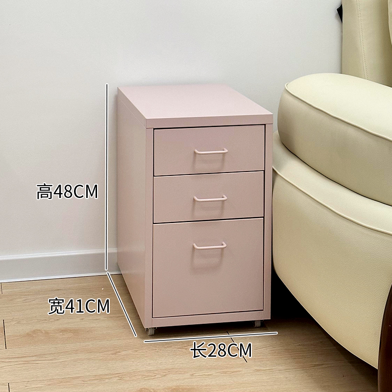 • αβγδεζ【핑크】도파민 책상 밑 철제 캐비닛 - 대형 서랍 3개 αβγδεζ☆