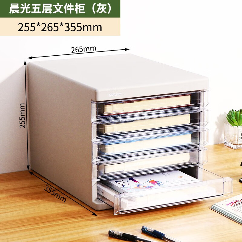 • 5단 투명 파일 캐비닛(라벨 포함) - 회색