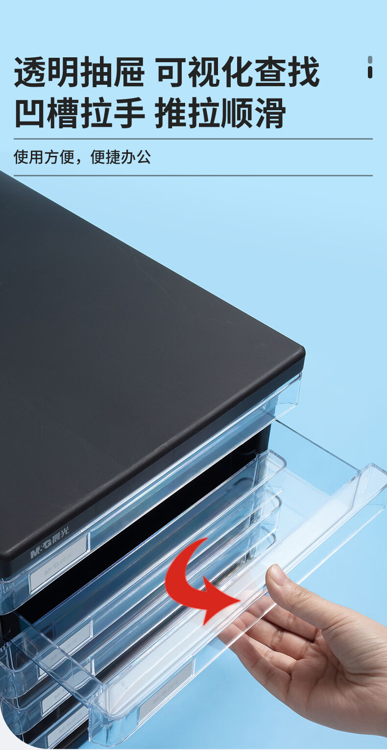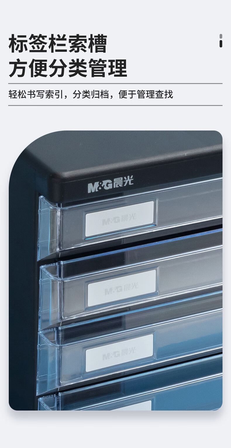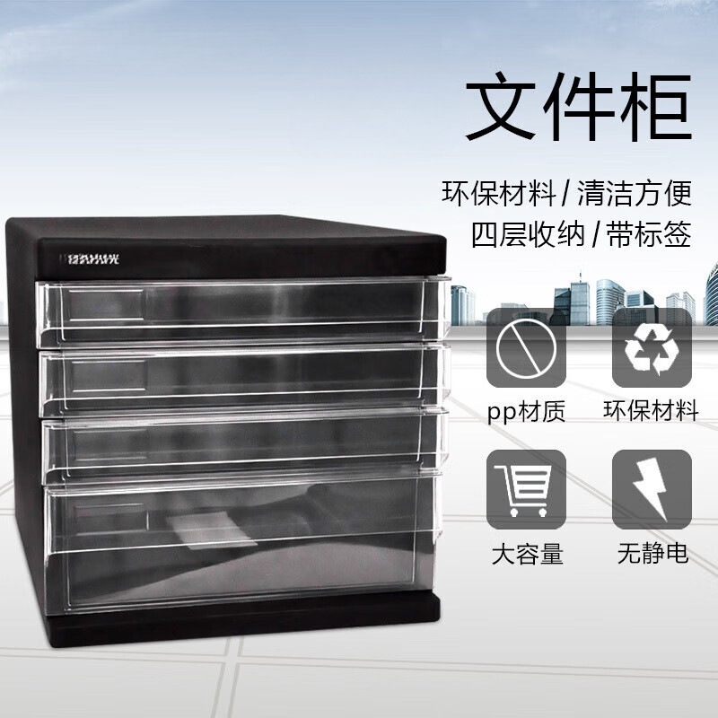• 4단 투명 파일 캐비닛(라벨 포함) - 검정색