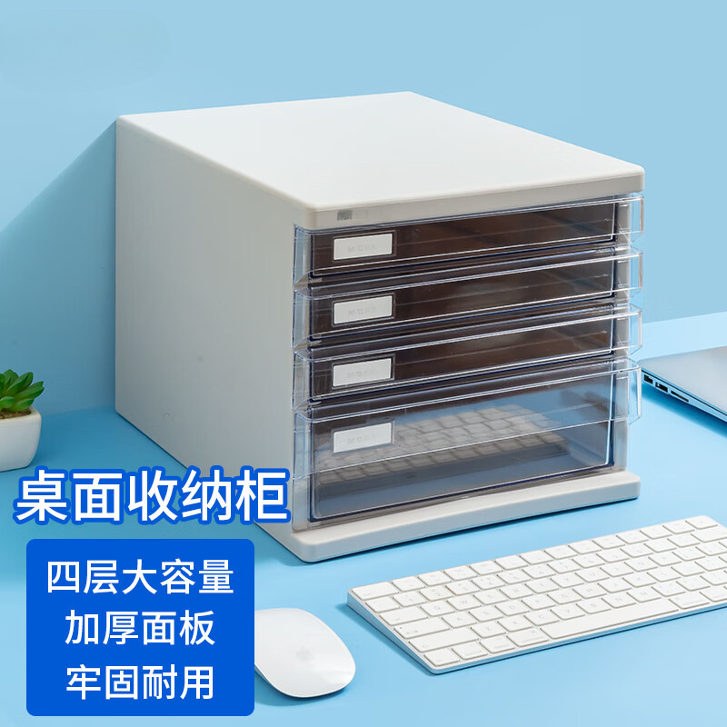 • 4단 투명 파일 캐비닛(라벨 포함) - 회색