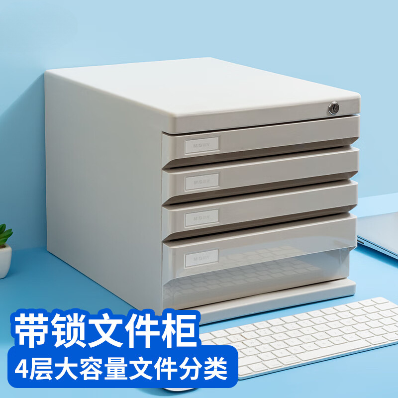 • 4단 잠금식 파일 캐비닛(라벨 포함) - 회색