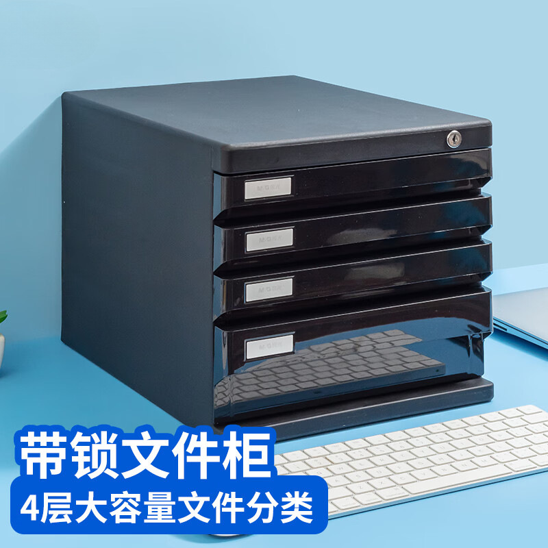 • 4단 잠금식 파일 캐비닛(라벨 포함) - 검정색