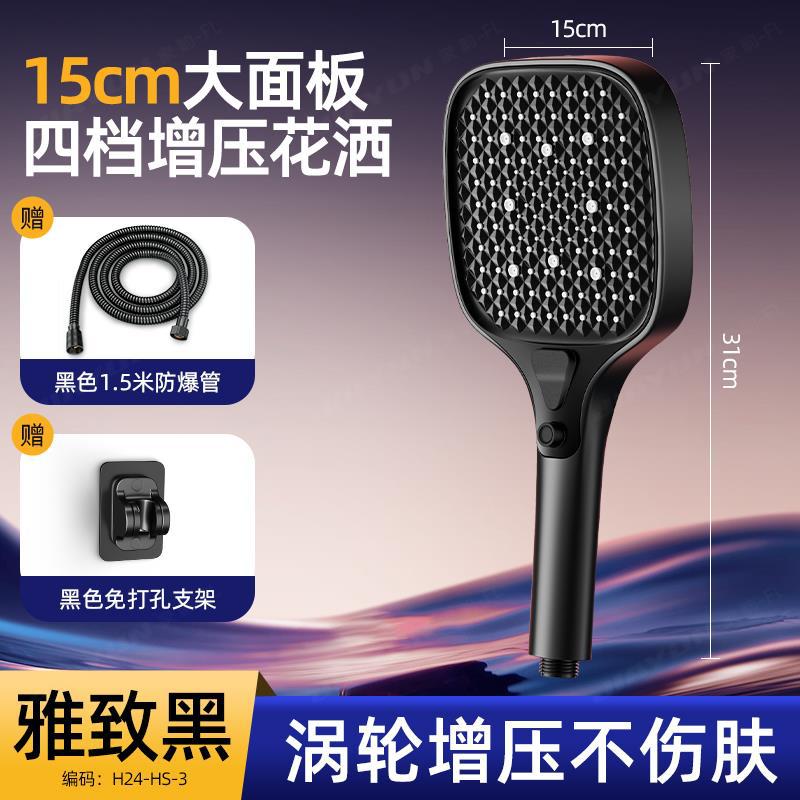• 【SA-88】145호#【블랙 세트 3】 15cm 초대형 패널 가압 샤워기 + 1.5m 호스 + 미국식 거치대