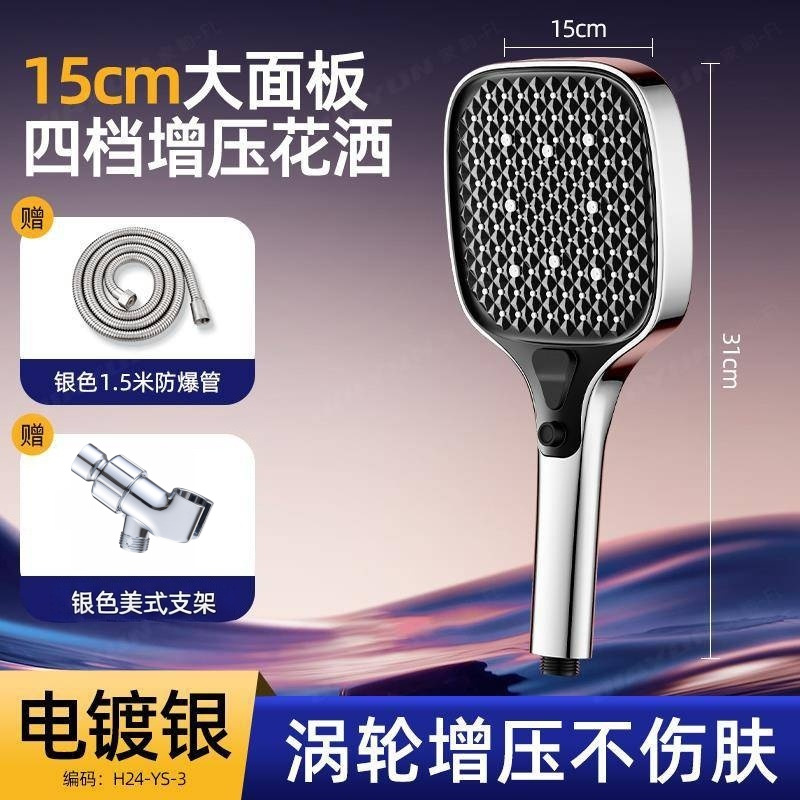 • 【SA-88】145호#【실버 세트 3】 15cm 초대형 패널 가압 샤워기 + 1.5m 호스 + 거치대