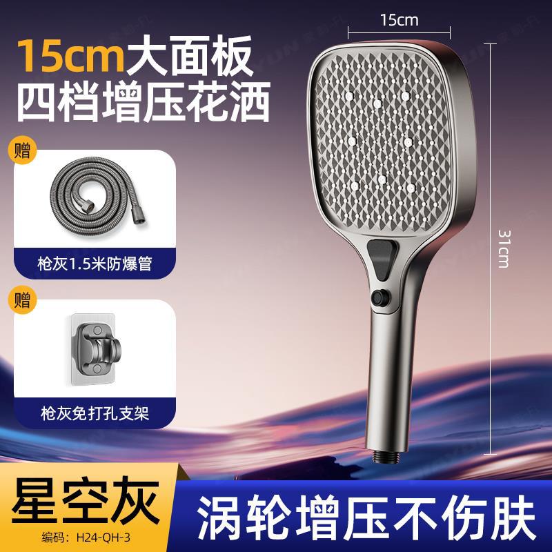 • 【SA-88】145호#【회색 세트 3】 15cm 초대형 패널 가압 샤워기 + 1.5m 호스 + 거치대