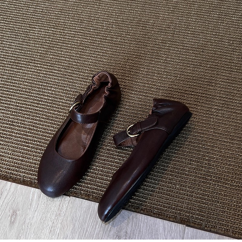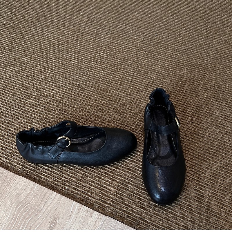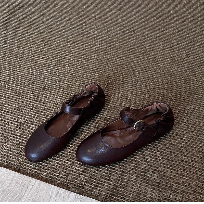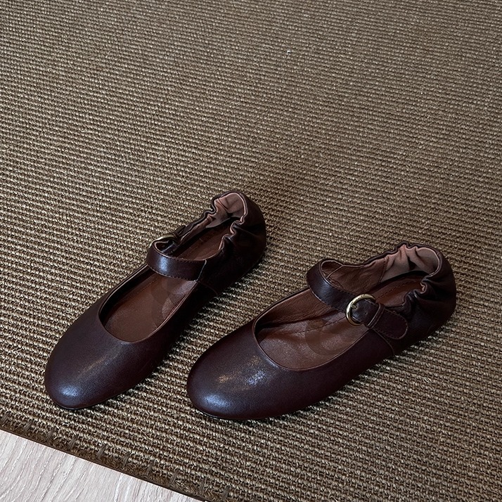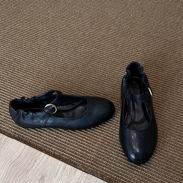 패턴 제작 중 복고풍 심플한 작은 가죽 신발, 대학 스타일 원 스트랩 메리 제인 문학 플랫 메리 제인 여성용 신발스토어 가기