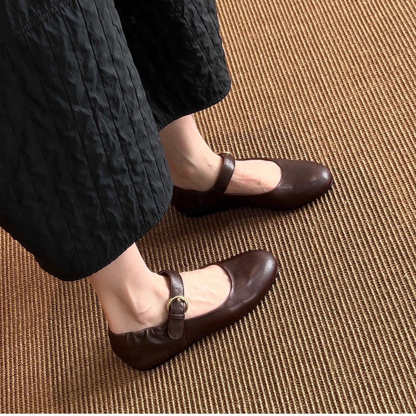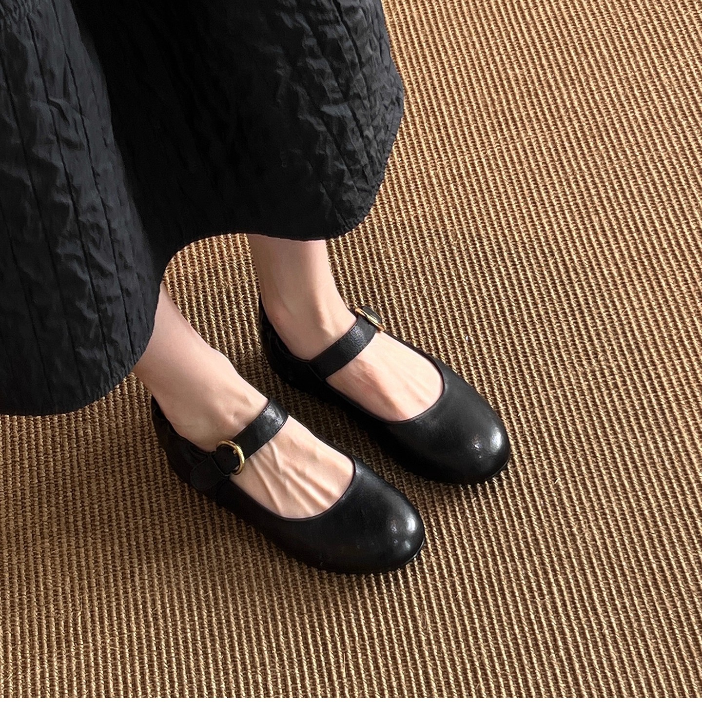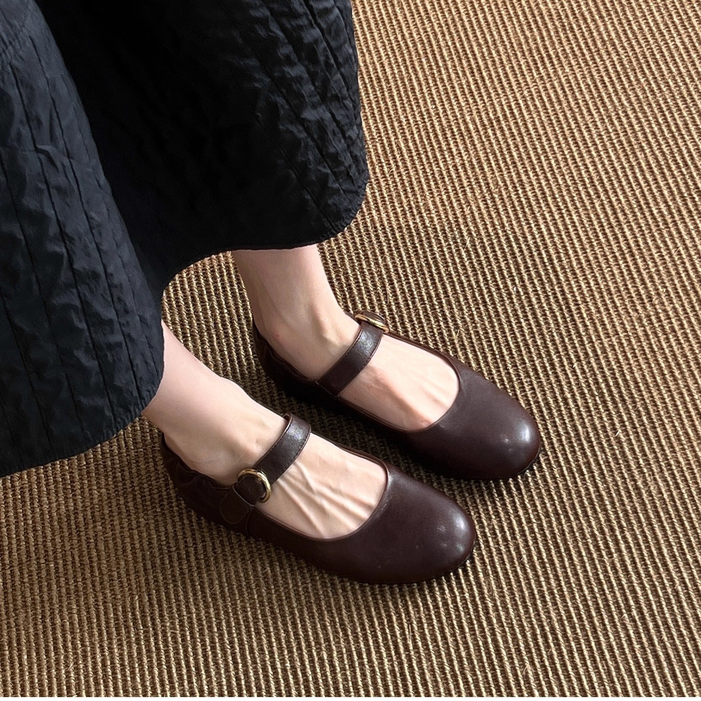 패턴 제작 중 복고풍 심플한 작은 가죽 신발, 대학 스타일 원 스트랩 메리 제인 문학 플랫 메리 제인 여성용 신발스토어 가기