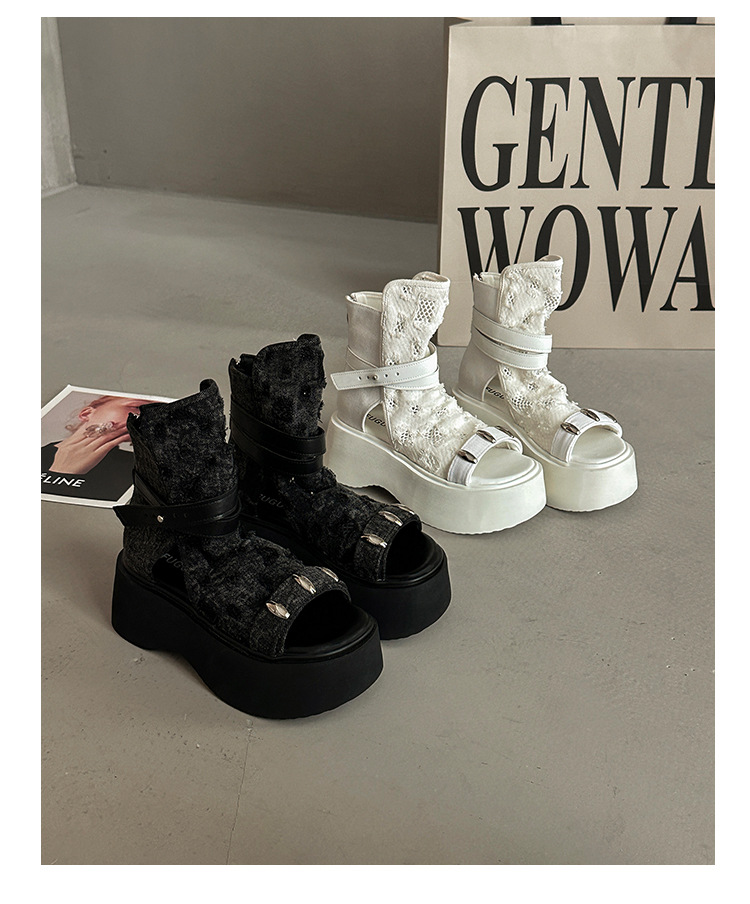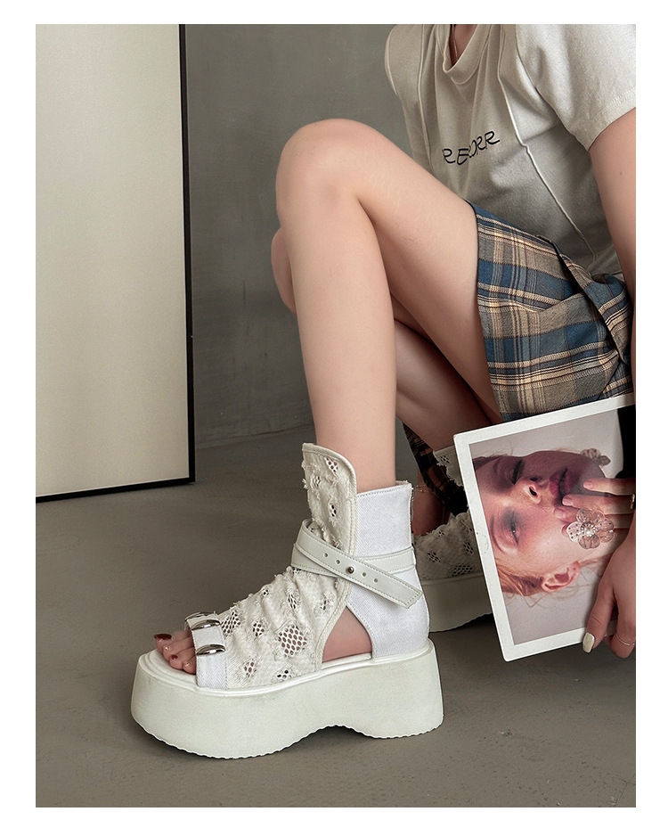 여성을위한 틈새 디자인 중공 통기성 패션 샌들 여름 패션 복고풍 다목적 캐주얼 오픈 발가락 두꺼운 밑창 샌들