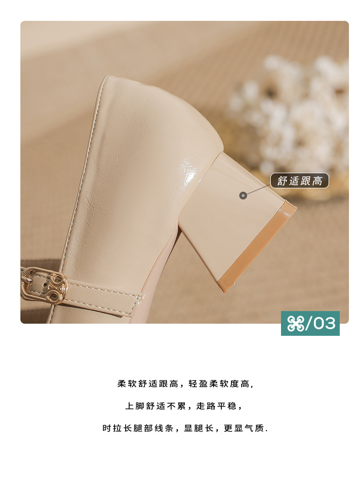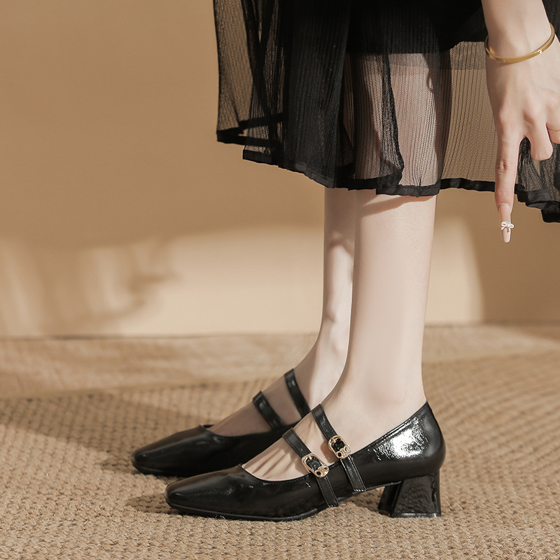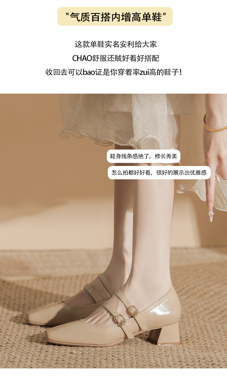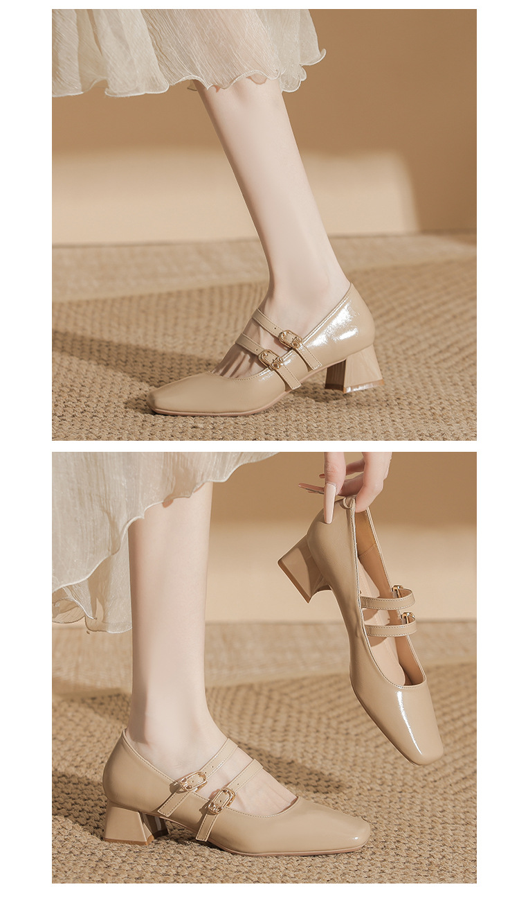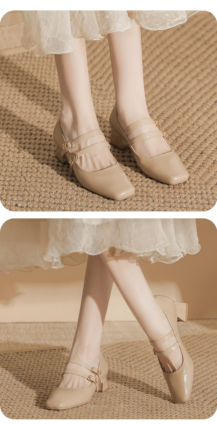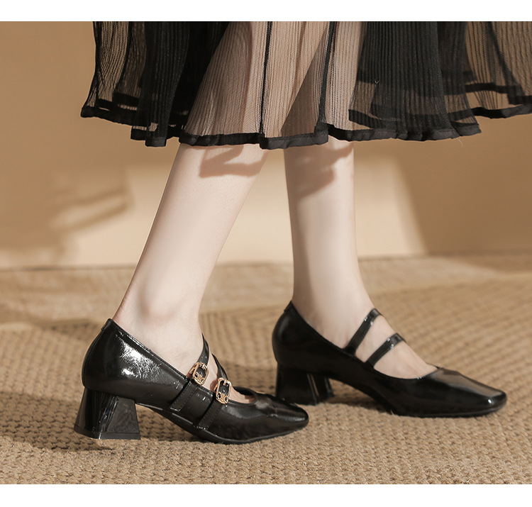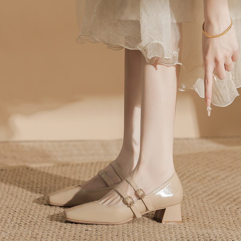여성용 누드 메리 제인 작은 가죽 신발, 여성용 스커트 두꺼운 굽 신발, 2025 봄 새로운 스타일, 여성용 저녁 바람 부드러운 신발스토어 가기