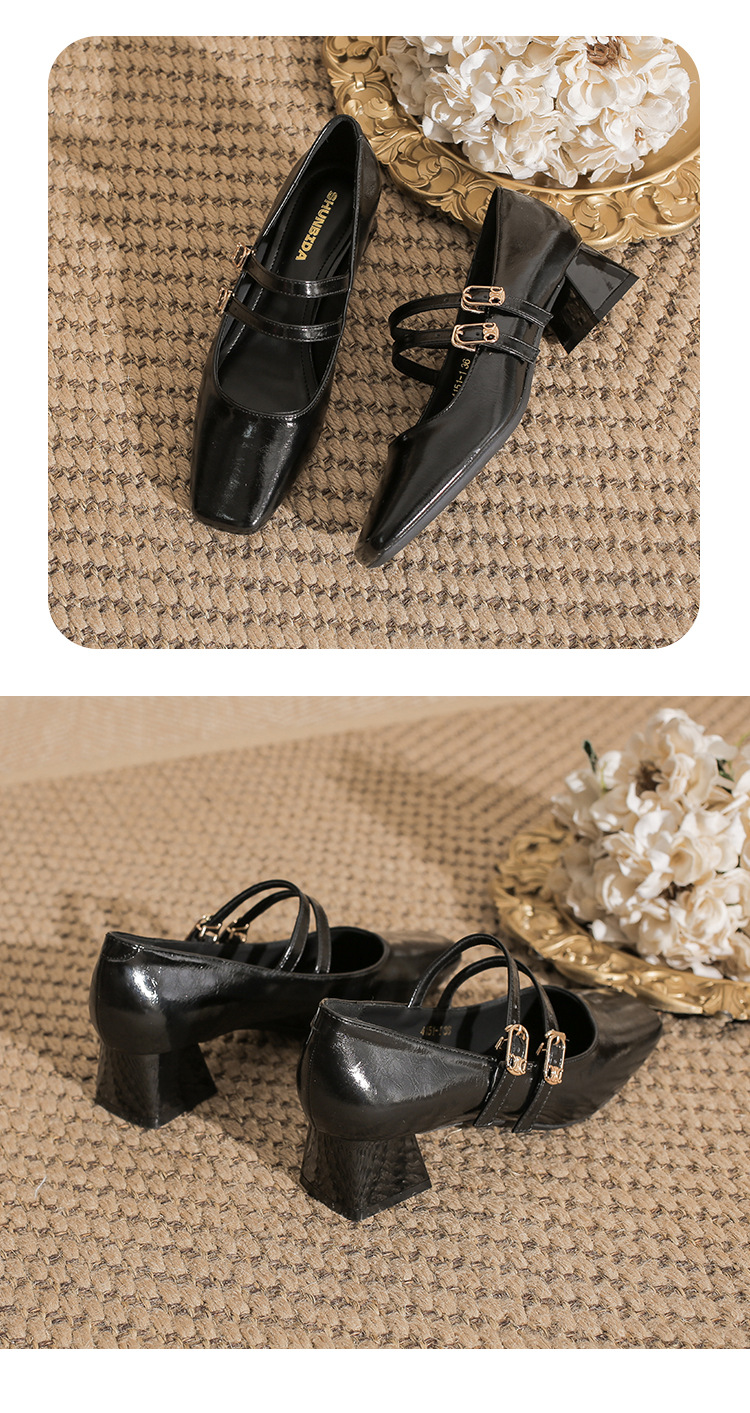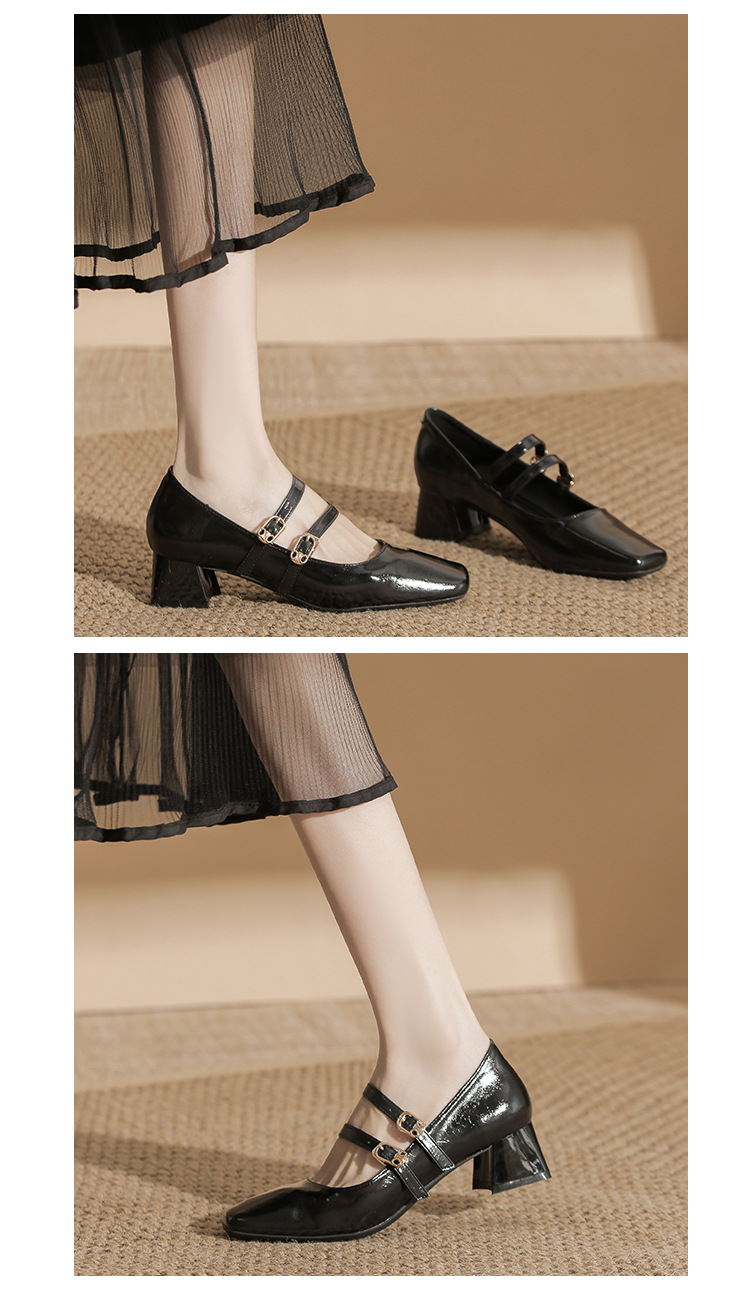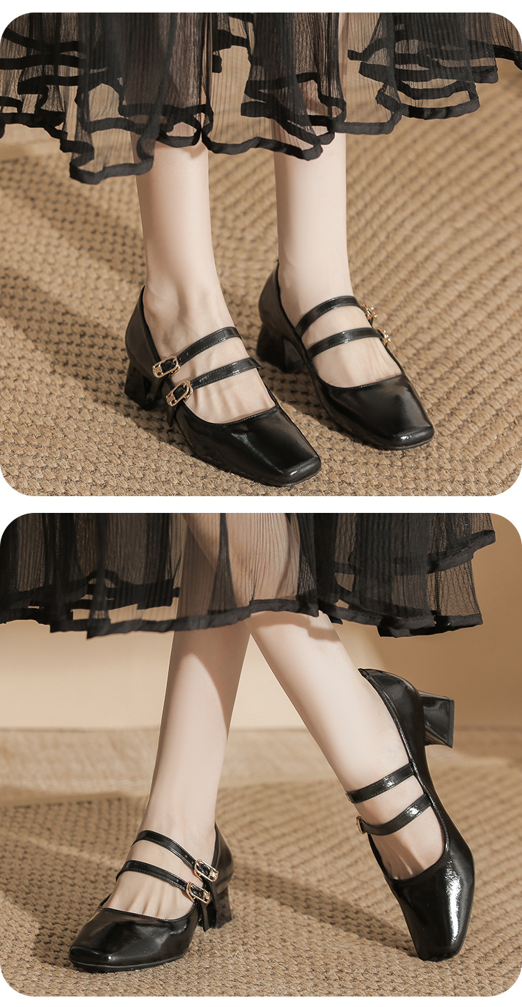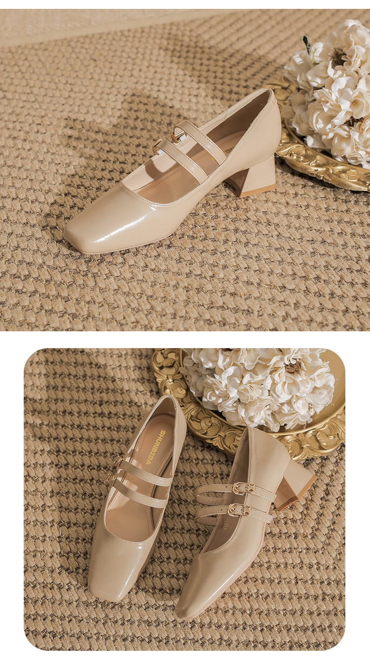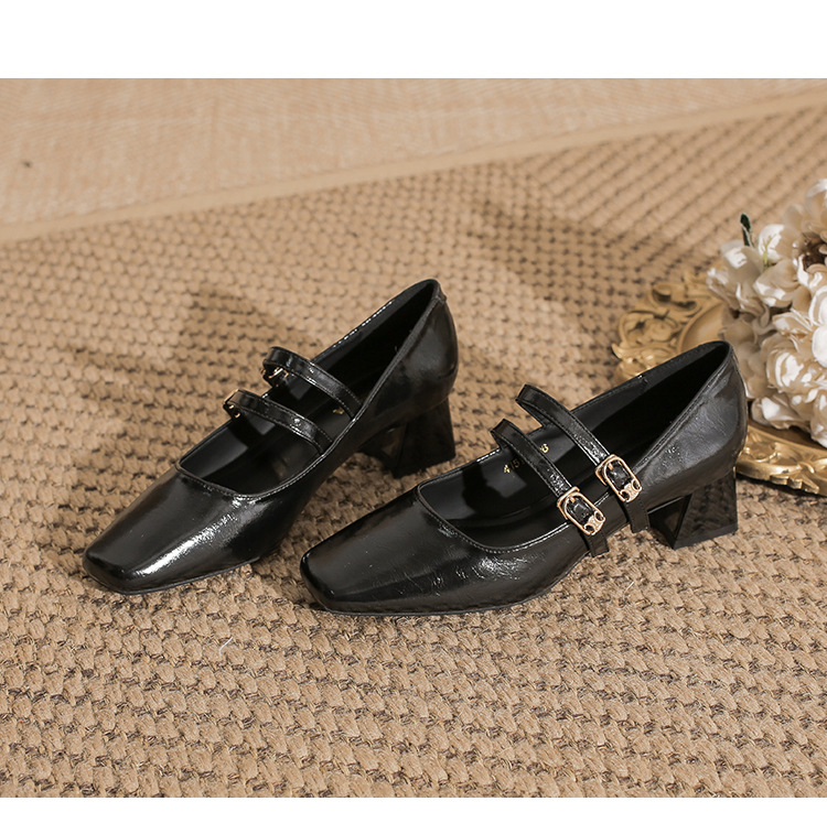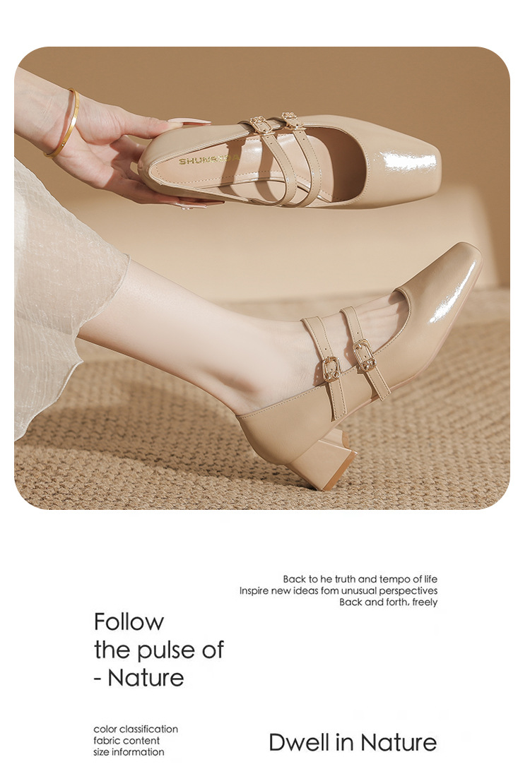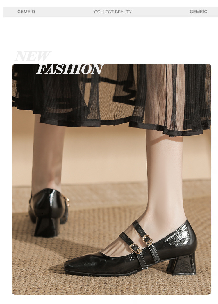여성용 누드 메리 제인 작은 가죽 신발, 여성용 스커트 두꺼운 굽 신발, 2025 봄 새로운 스타일, 여성용 저녁 바람 부드러운 신발스토어 가기