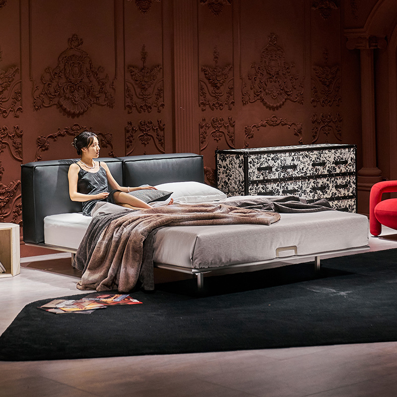 두부 블록 가죽 침대 이탈리아 미니멀리스트 더블 웨딩 침대 침실 서스펜션 침대 라이트 럭셔리 침대 하이 엔드 분위기와 고급 감각스토어 가기