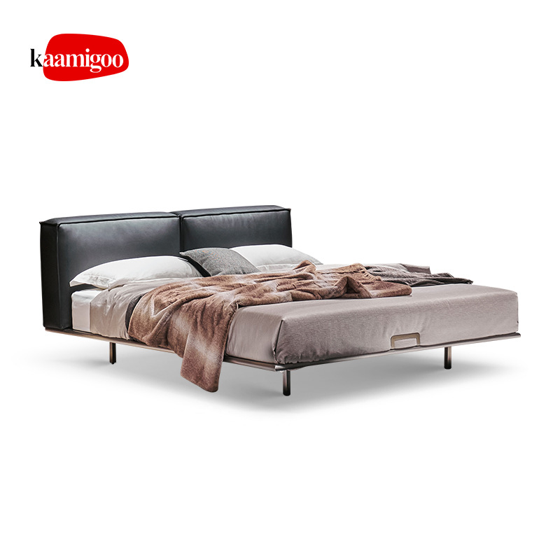 두부 블록 가죽 침대 이탈리아 미니멀리스트 더블 웨딩 침대 침실 서스펜션 침대 라이트 럭셔리 침대 하이 엔드 분위기와 고급 감각