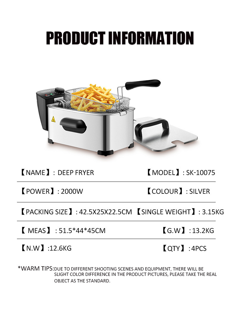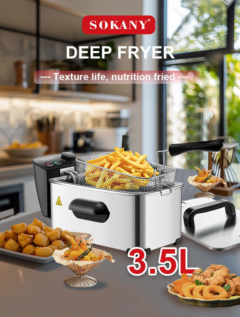 국경 간 소형 튀김기 가정용 상업용 3.5L 전기 튀김기 전기 튀김기 꼬치 튀김기 주방 튀김기