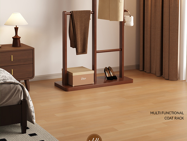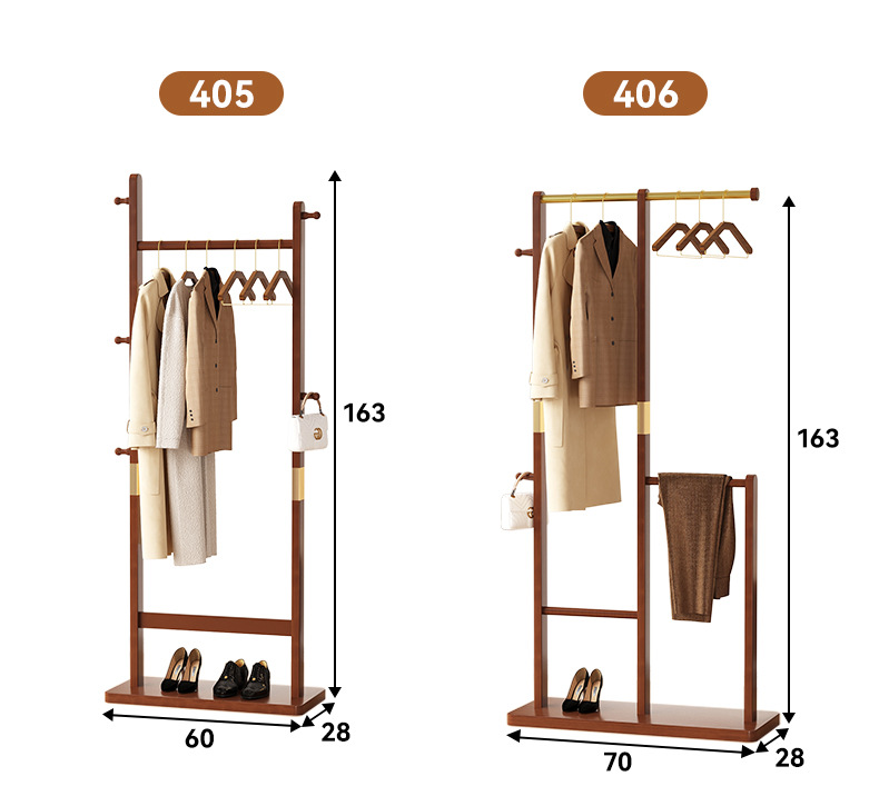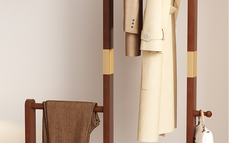 새로운 중국 스타일의 높고 낮은 코트 랙 단단한 나무 옷 걸이 다기능 스토리지 코트 랙 가정용 옷 걸이 바닥 스탠딩