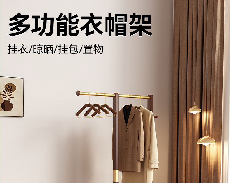 새로운 중국 스타일의 높고 낮은 코트 랙 단단한 나무 옷 걸이 다기능 스토리지 코트 랙 가정용 옷 걸이 바닥 스탠딩스토어 가기