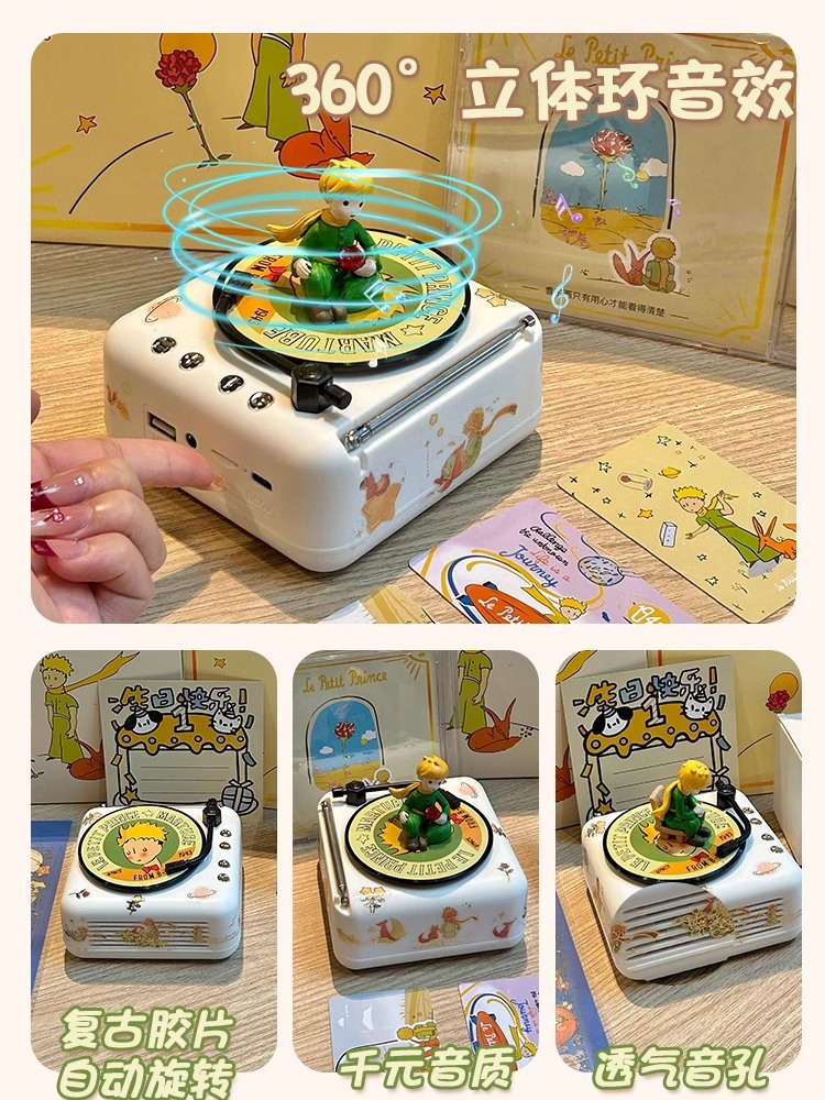 어린 왕자 블루투스 스피커 무선 소형 스피커 여자 친구와 가장 친한 친구를 위한 귀여운 복고풍 비닐 레코드 생일 선물스토어 가기