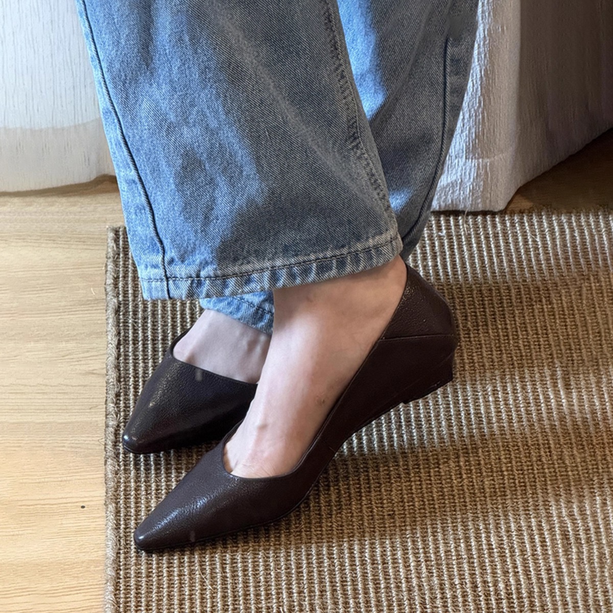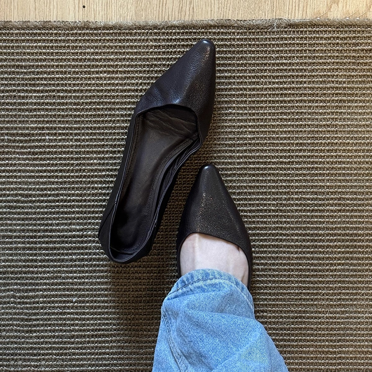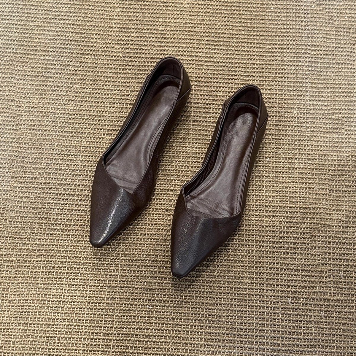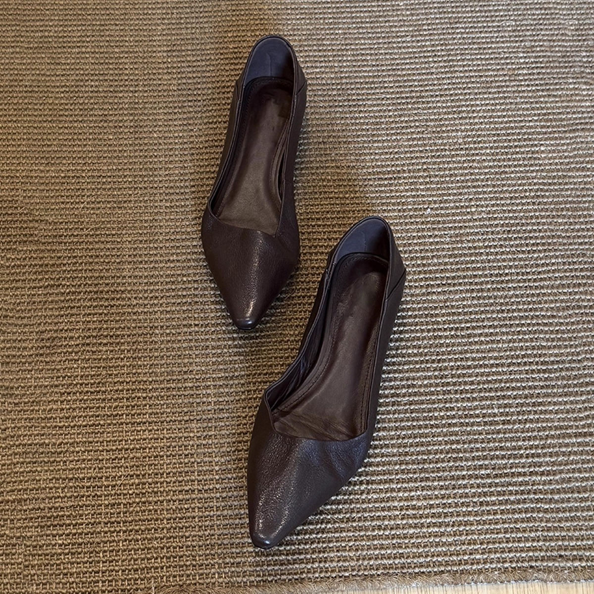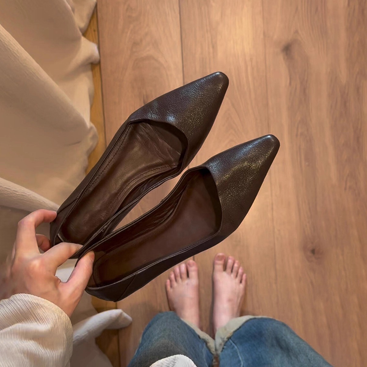 양가죽 버전 ~ 레트로 패션 여성용 가죽 펌프스 슈즈, 로우힐, 부드러운 밑창, 뾰족한 발가락, 다재다능한 통근 작업화