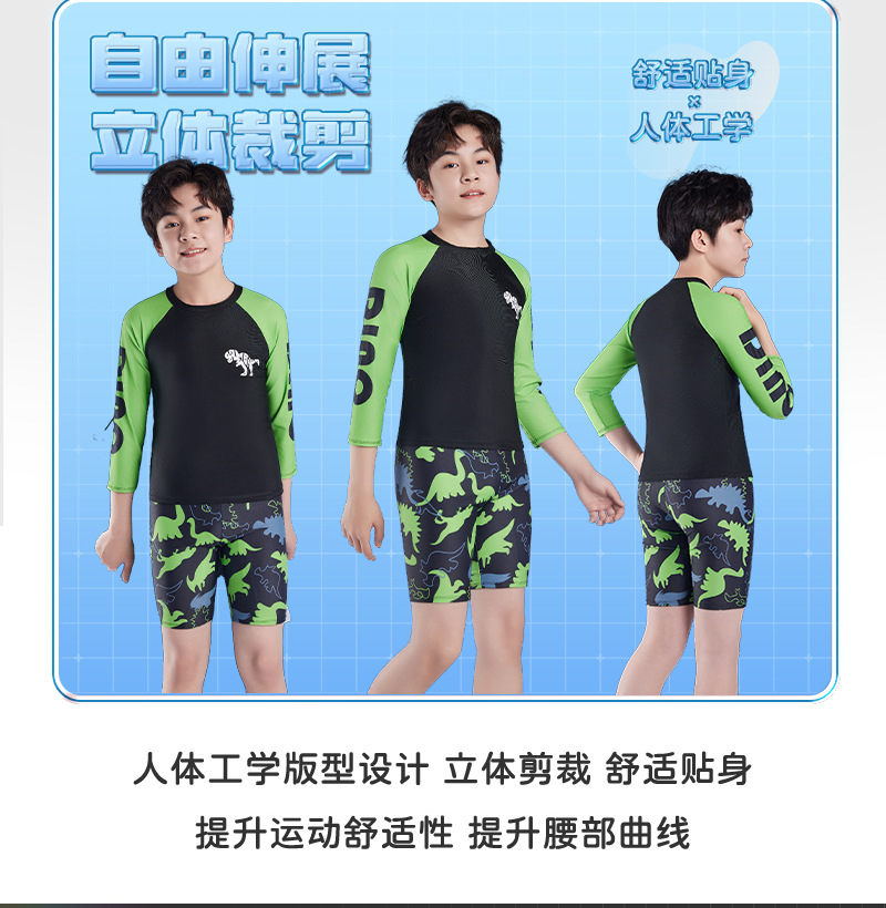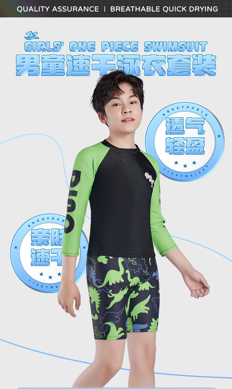 아동용 수영복 긴팔 복서 소년 스플릿 속건성 수영복 및 수영 트렁크 중대형 아동 수영 투피스 세트 남성 및 청소년스토어 가기