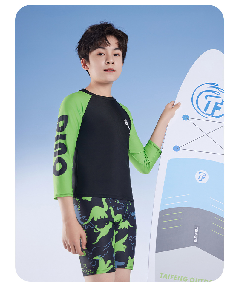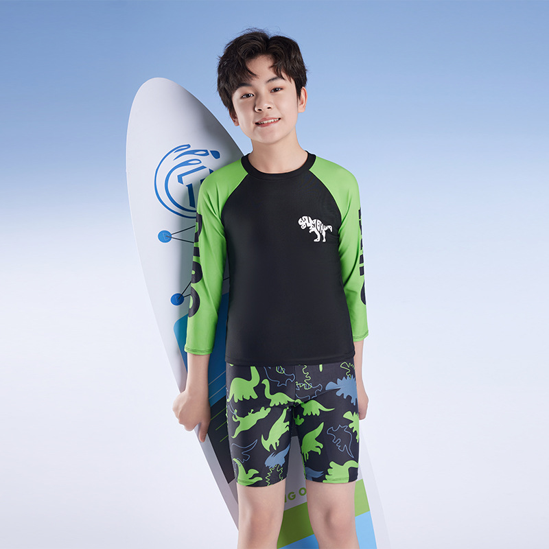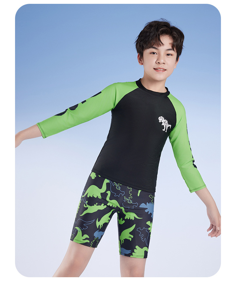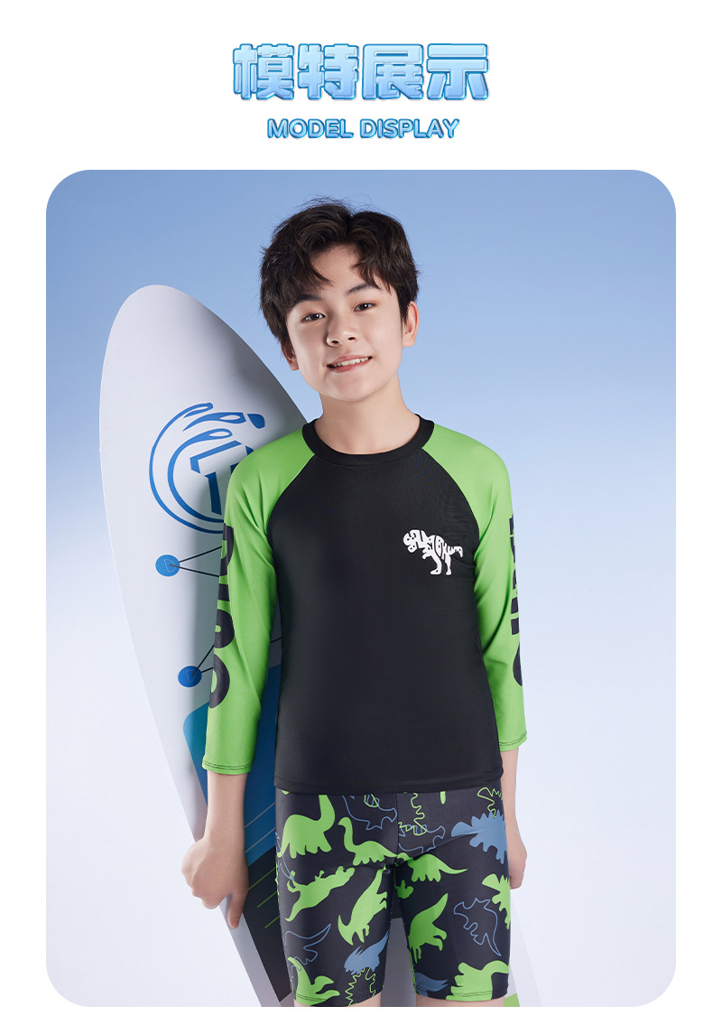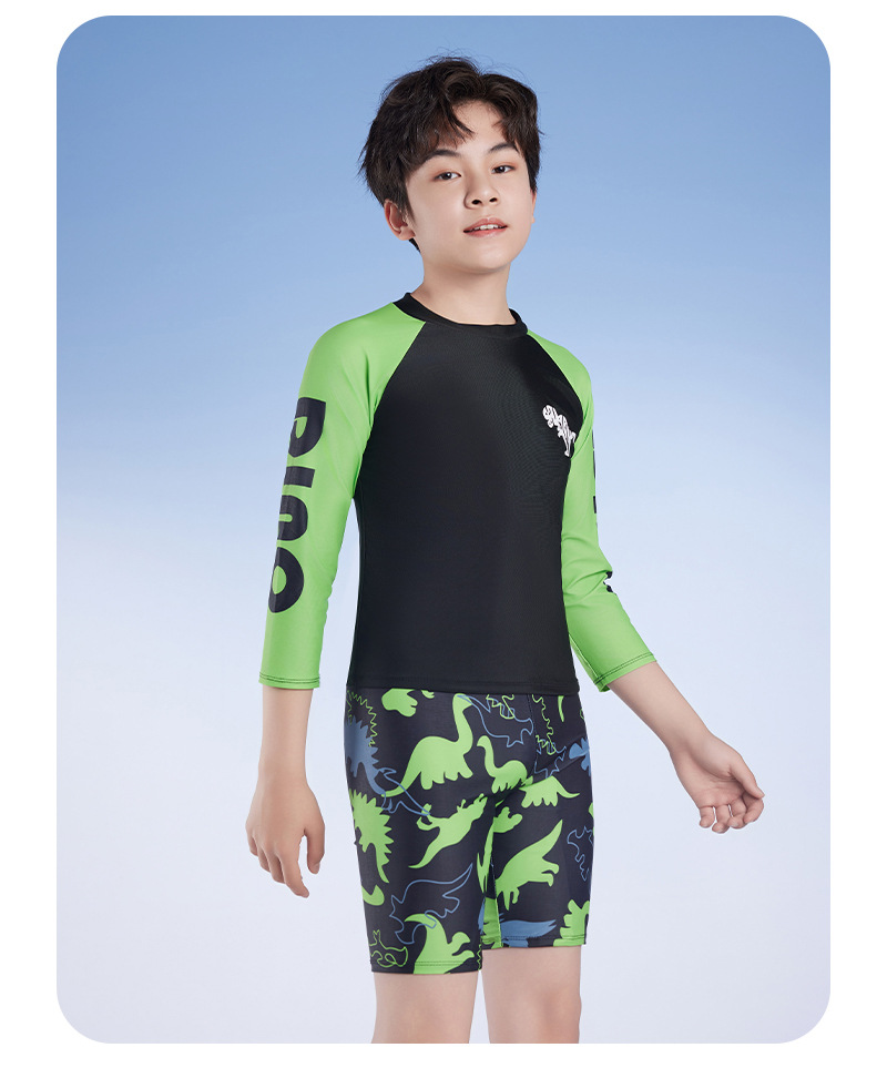 아동용 수영복 긴팔 복서 소년 스플릿 속건성 수영복 및 수영 트렁크 중대형 아동 수영 투피스 세트 남성 및 청소년