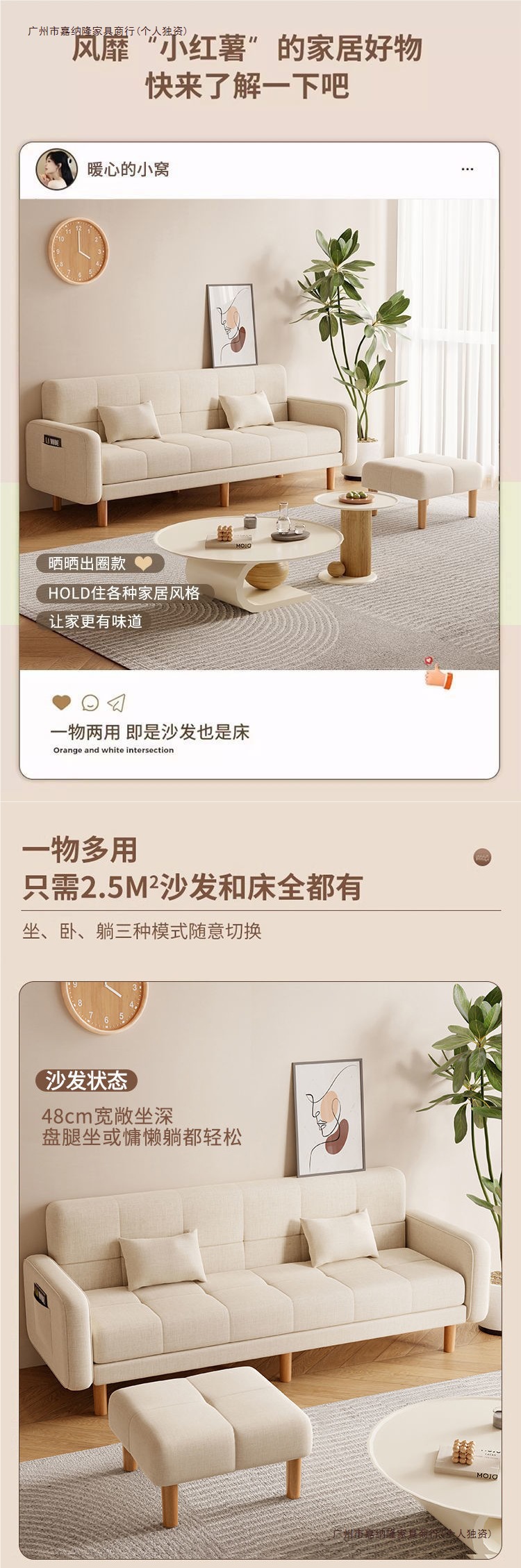 소형 거실용 소파 2024 새로운 스타일의 심플하고 모던한 3인용 임대실 겸용 접이식 소파 베드스토어 가기