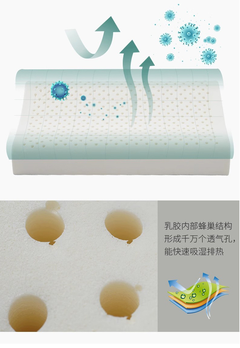 • 천연 라텍스 베개 코어 + 보호용 내부 메쉬 커버 + 재킷 없음