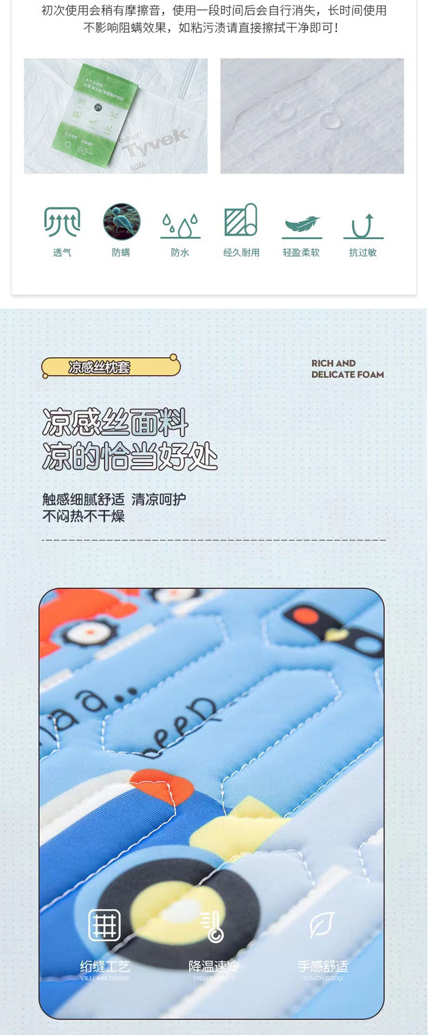 • 수입 베개심 + 보호 내부 커버 + 라텍스 레이어 아이스 실크 [여아]