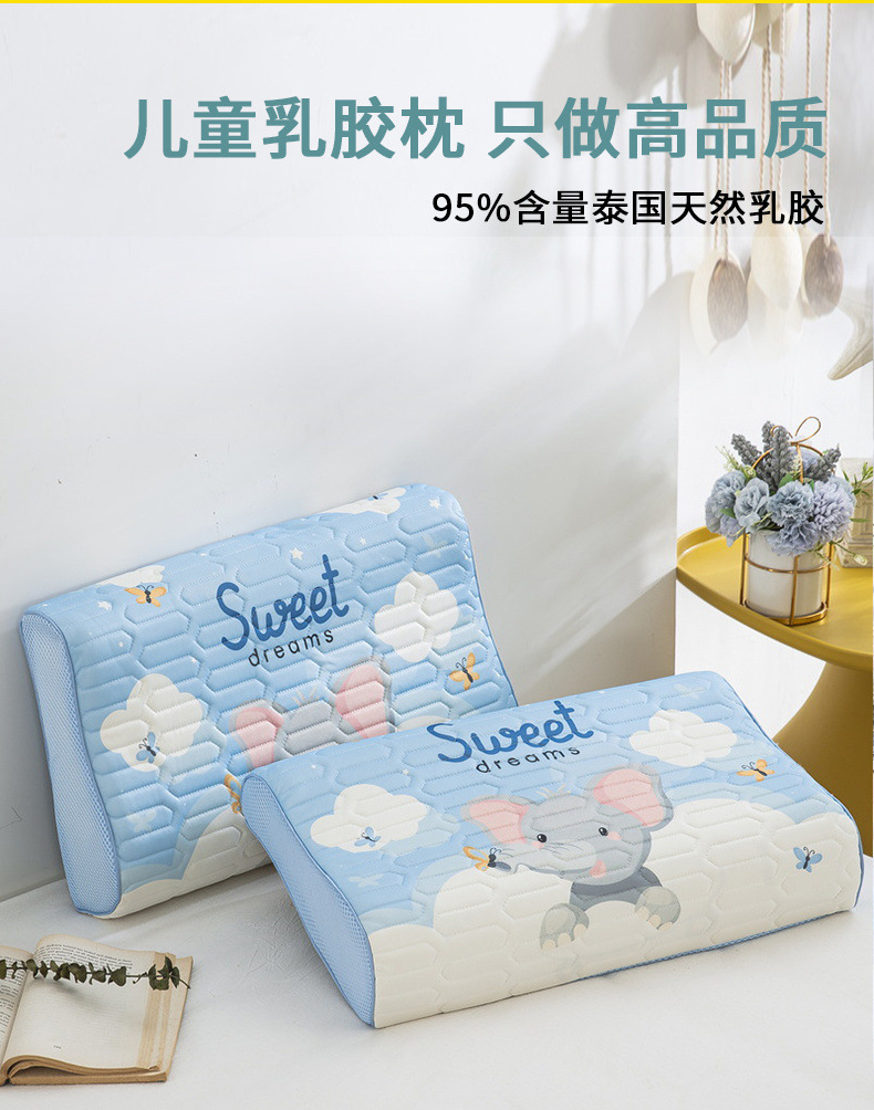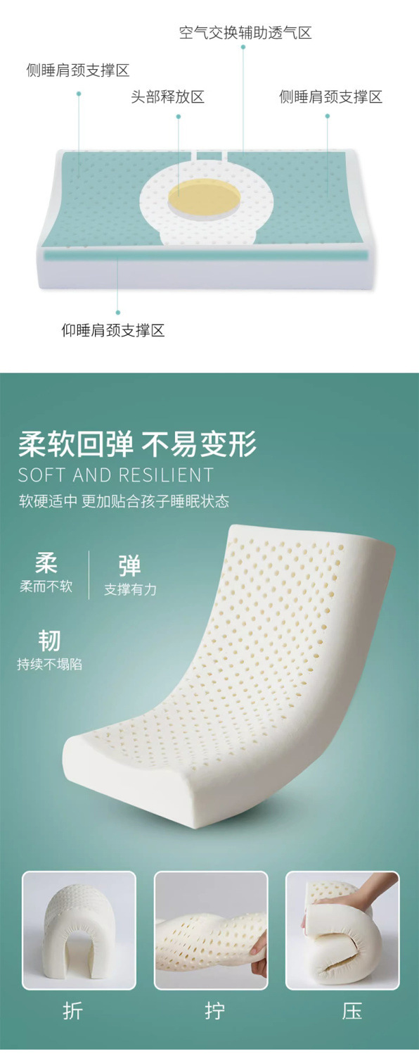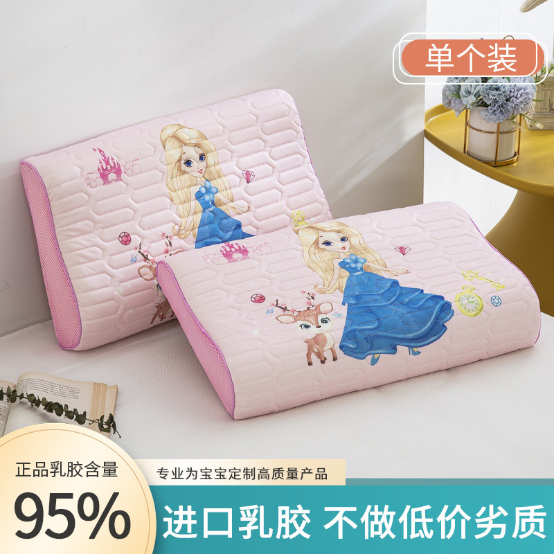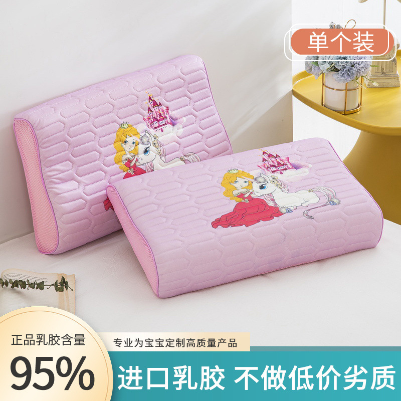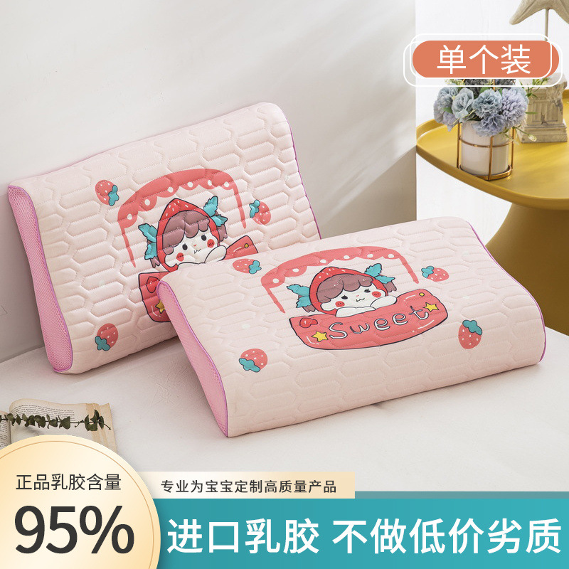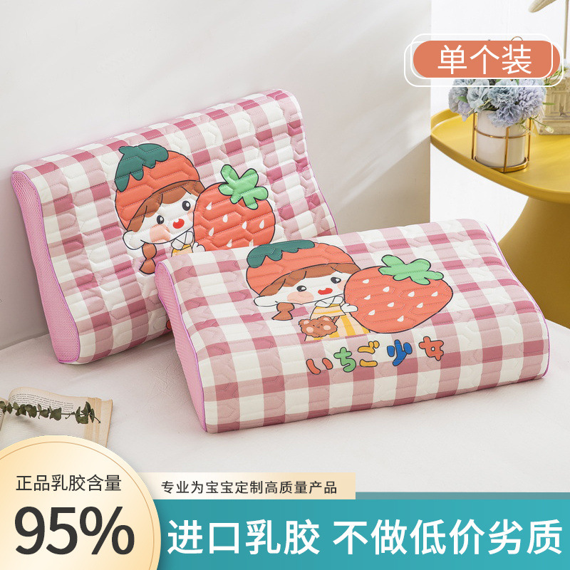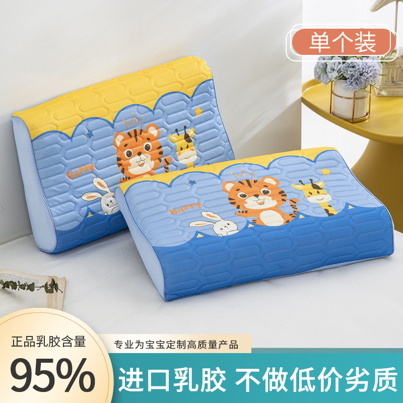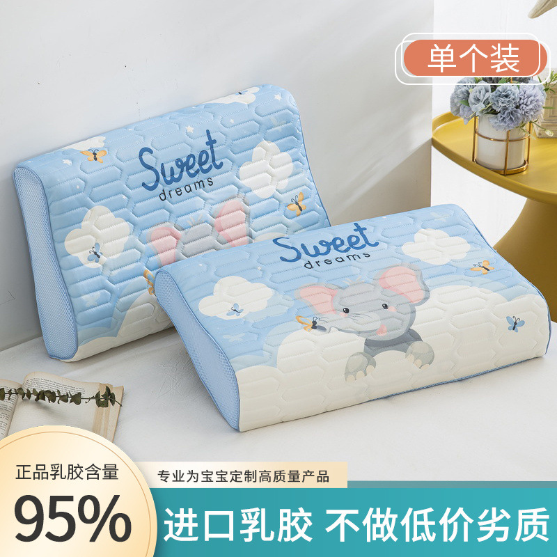 천연 수입 어린이 라텍스 베개 유치원 베개 아기 아기 목 베개 얼음 실크 통기성 땀 흡수 낮은 베개
