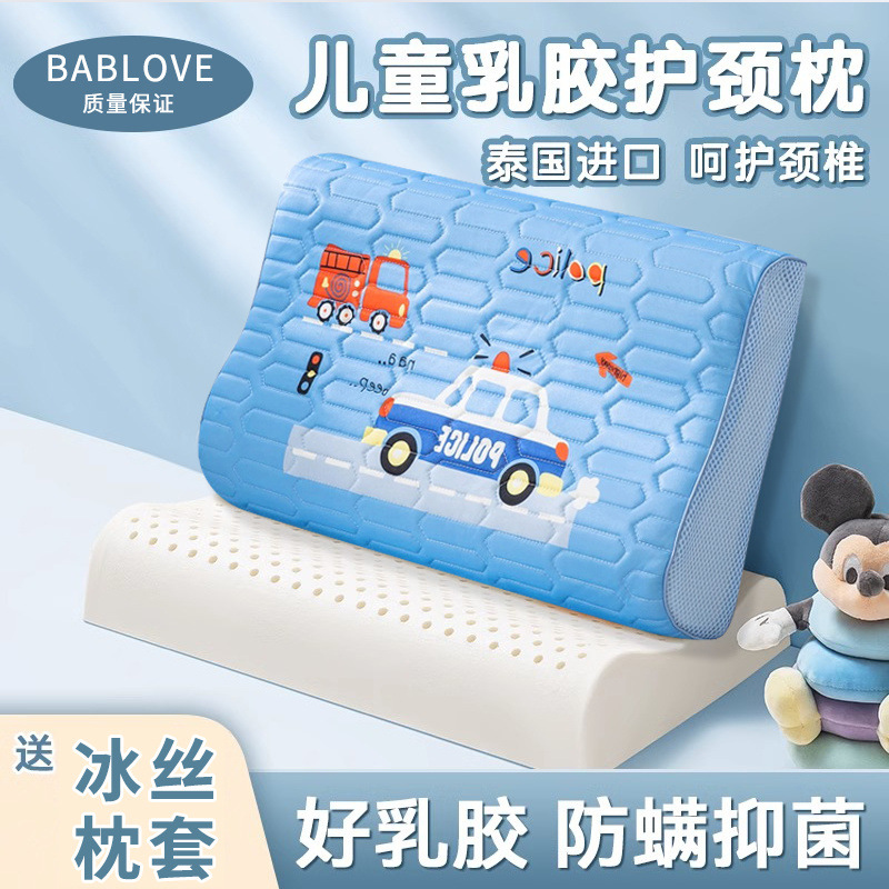 천연 수입 어린이 라텍스 베개 유치원 베개 아기 아기 목 베개 얼음 실크 통기성 땀 흡수 낮은 베개스토어 가기