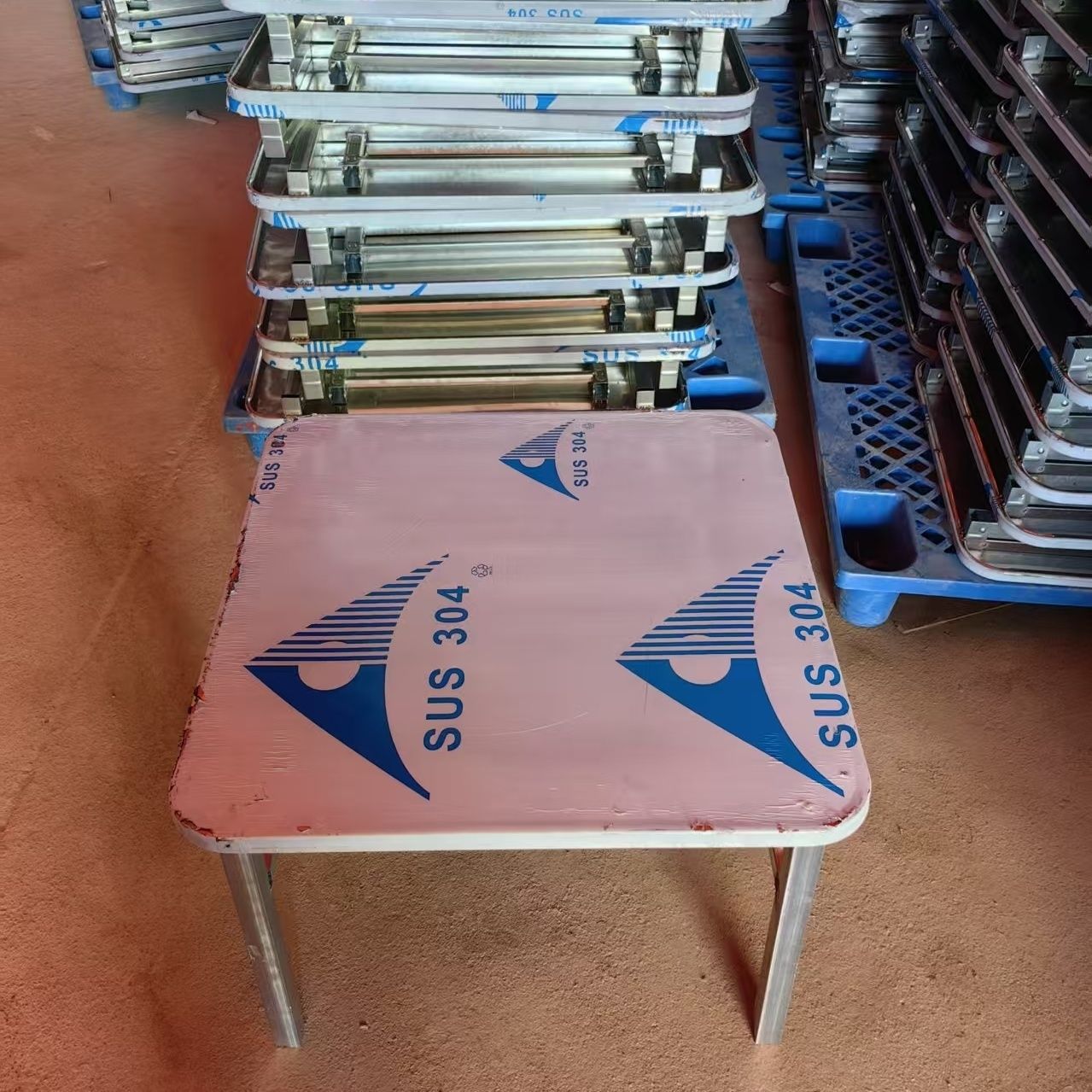 야외 노점 야시장 간이 식탁 직사각형 테이블 두꺼운 스테인레스 스틸 접이식 테이블 휴대용 바베큐 테이블
