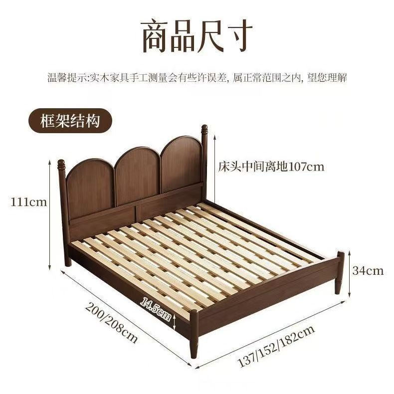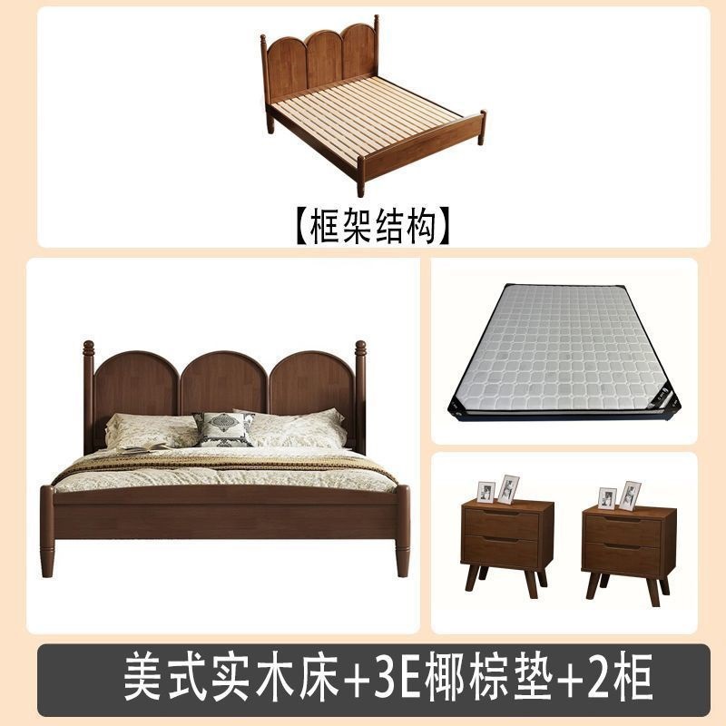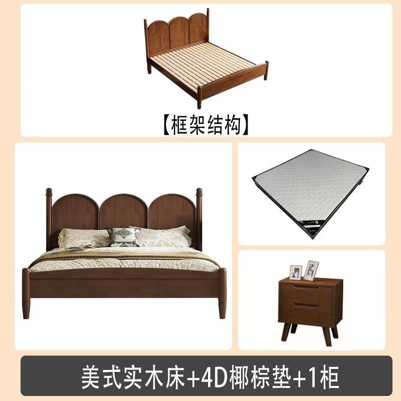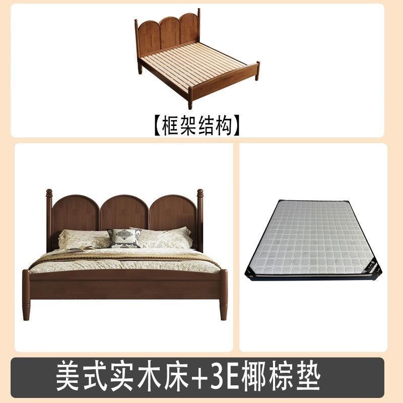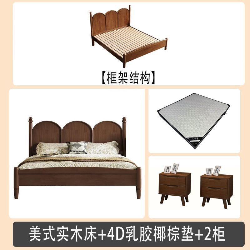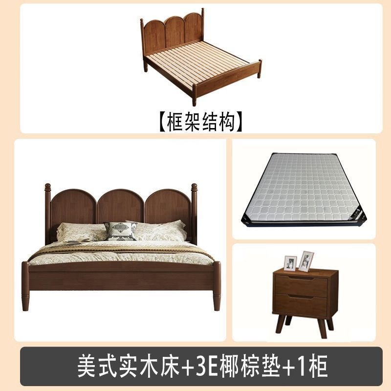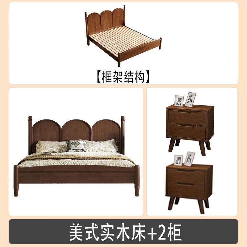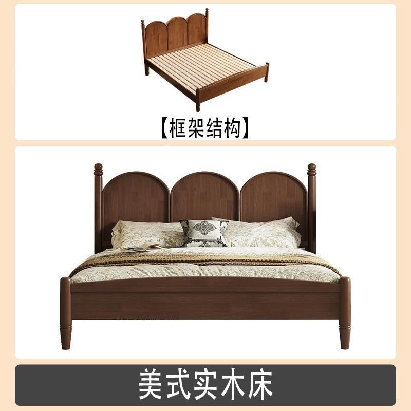 레트로 아메리칸 원목 침대 더블 침대 1.68m 모던 심플 중세 스타일 아파트 임대 하우스 홈스테이 침대