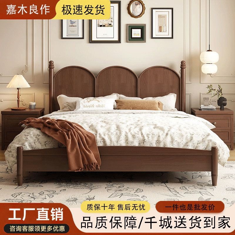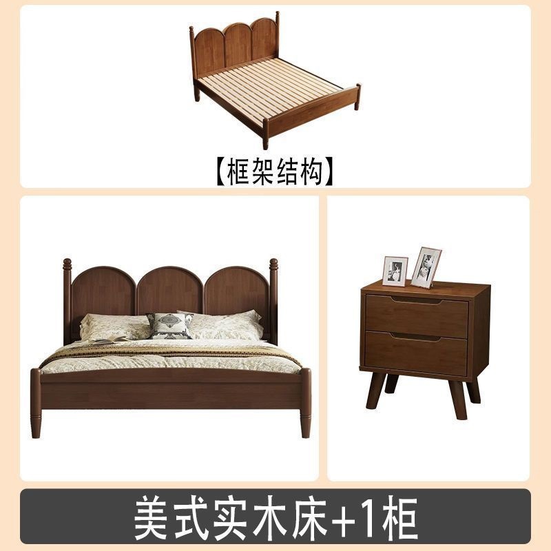 레트로 아메리칸 원목 침대 더블 침대 1.68m 모던 심플 중세 스타일 아파트 임대 하우스 홈스테이 침대스토어 가기