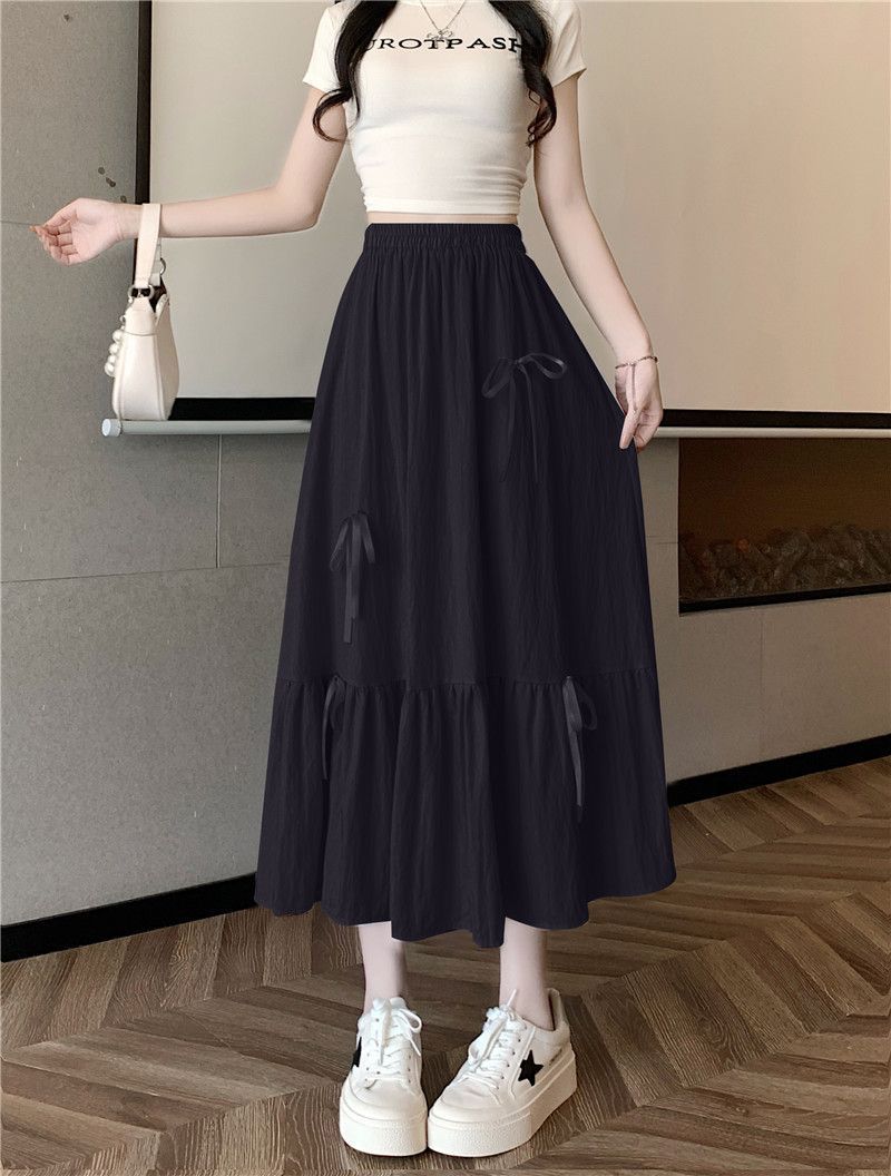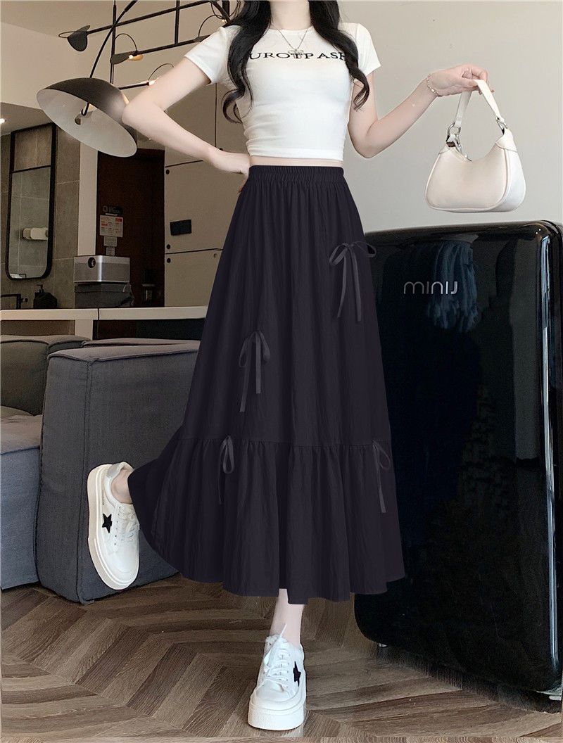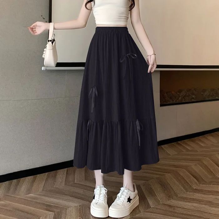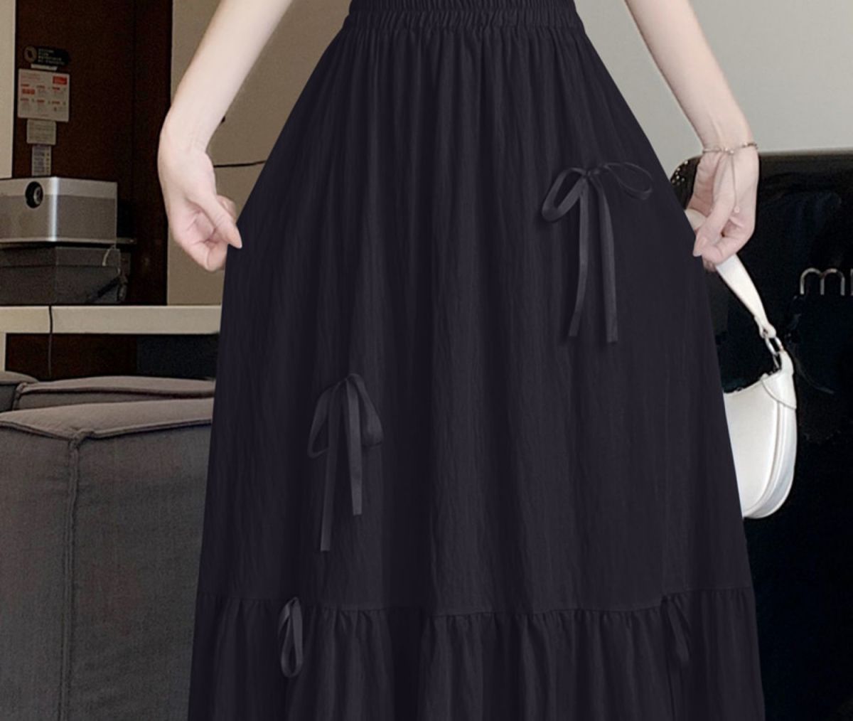2025 새로운 여름 부드러운 바람 보우 스티치 달콤한 스커트 여성 작은 케이크 중간 길이 스커트