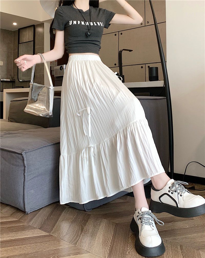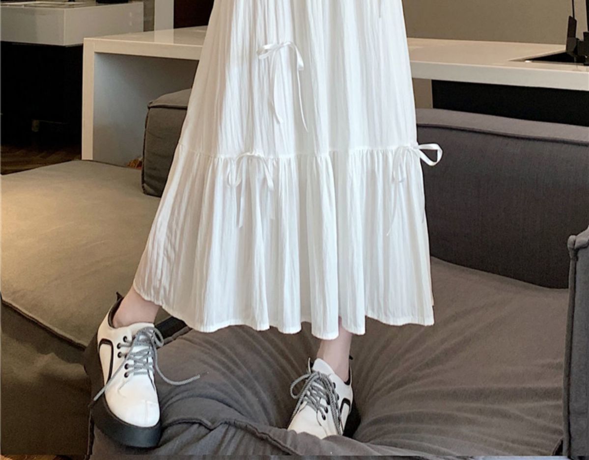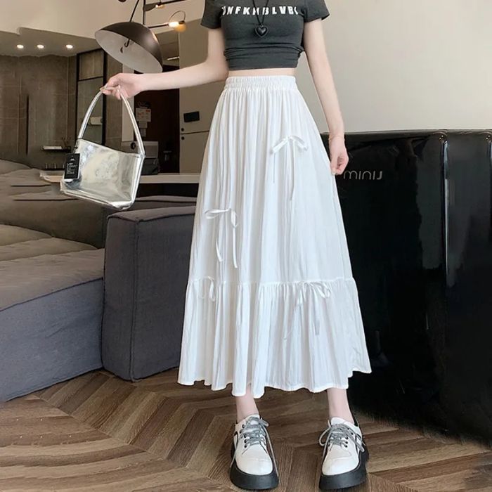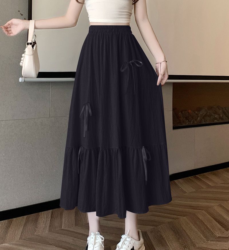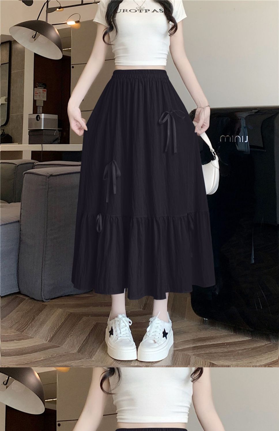 2025 새로운 여름 부드러운 바람 보우 스티치 달콤한 스커트 여성 작은 케이크 중간 길이 스커트