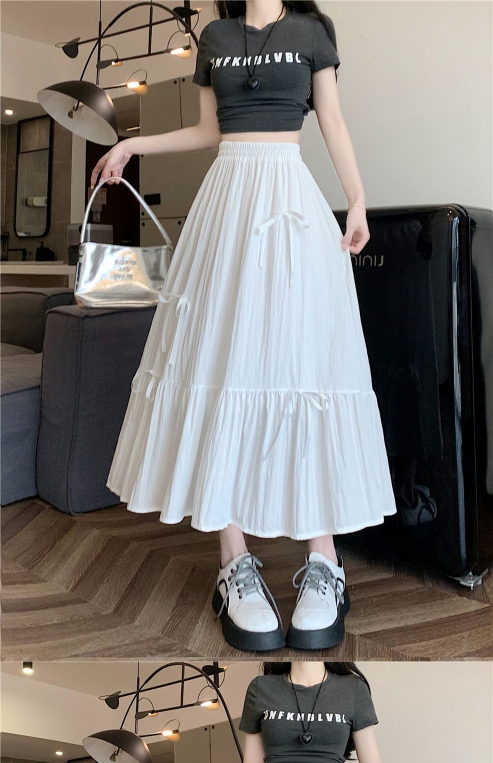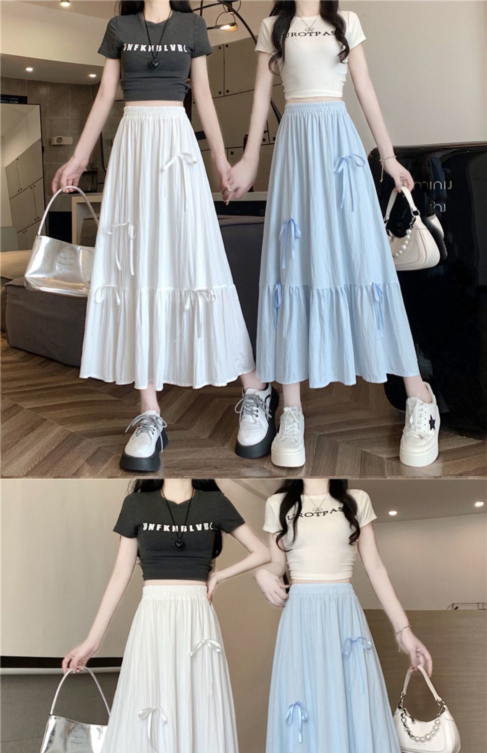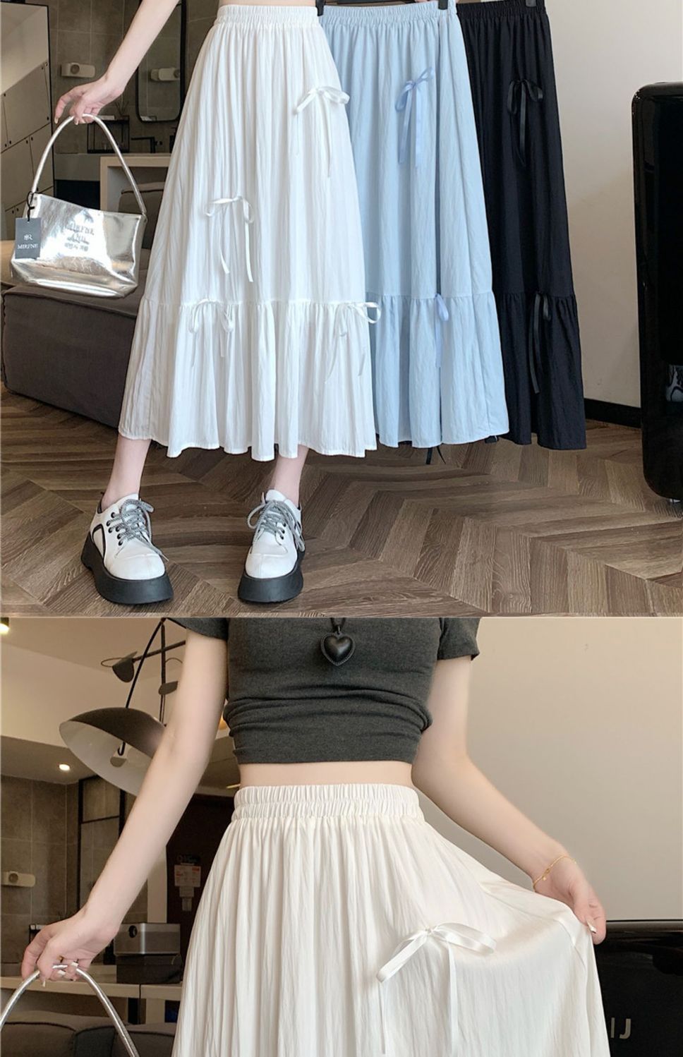 2025 새로운 여름 부드러운 바람 보우 스티치 달콤한 스커트 여성 작은 케이크 중간 길이 스커트스토어 가기