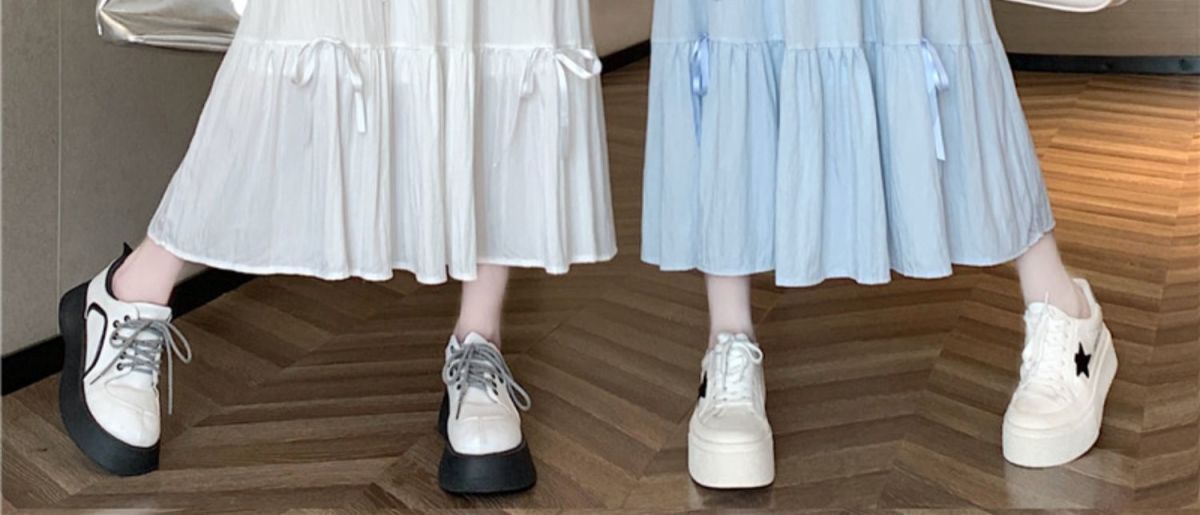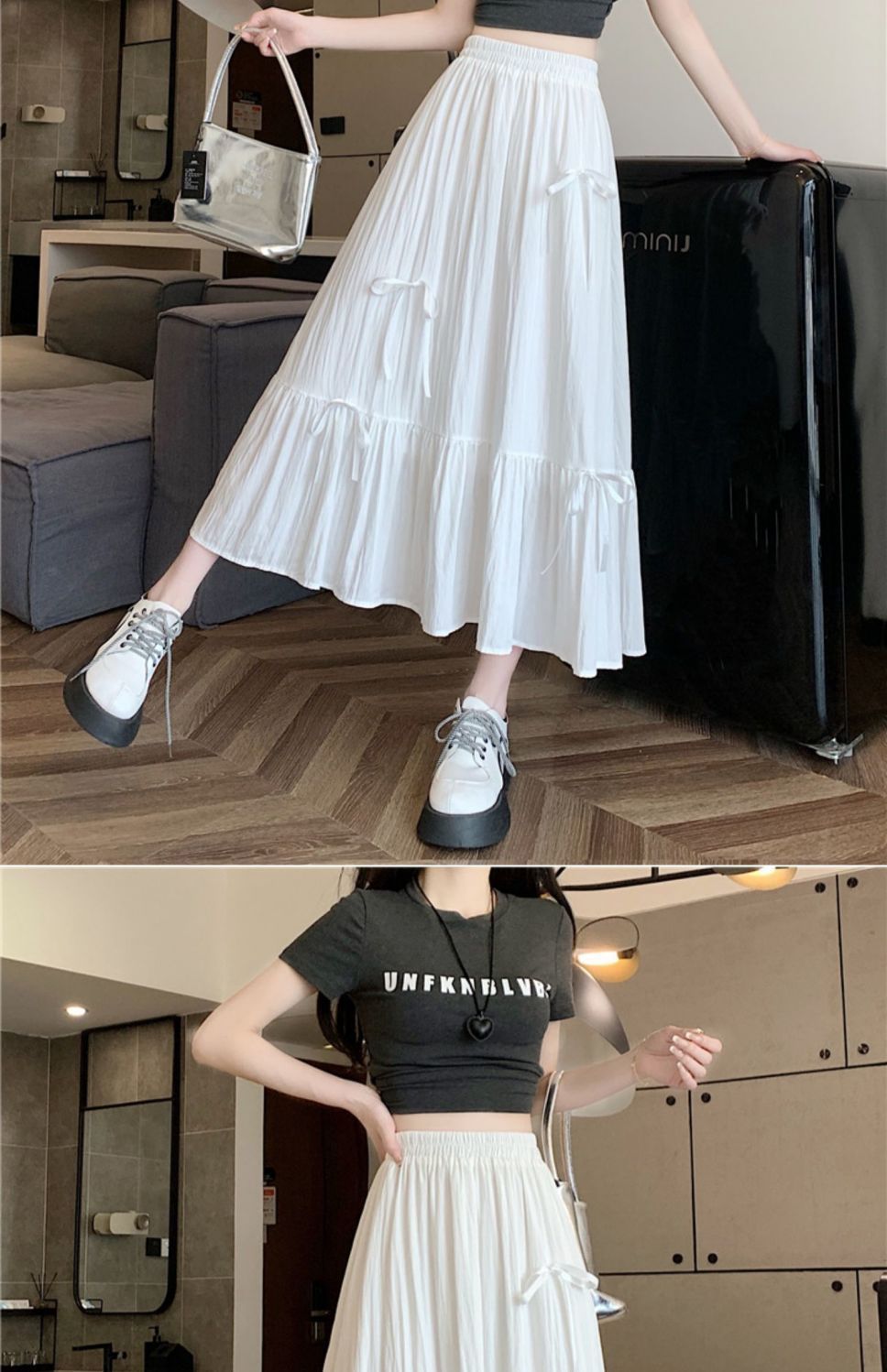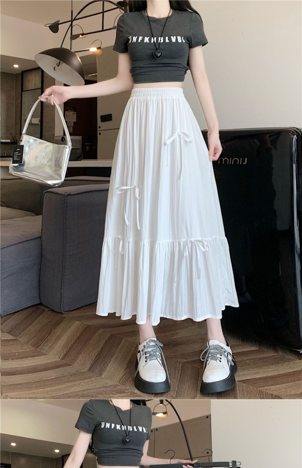 2025 새로운 여름 부드러운 바람 보우 스티치 달콤한 스커트 여성 작은 케이크 중간 길이 스커트스토어 가기